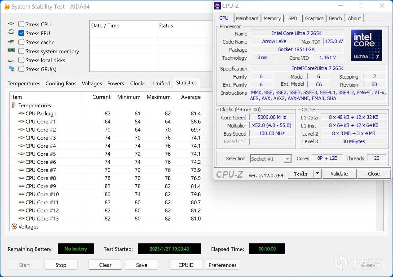 CPU選擇了盒裝版本的Intel Ultra 7 265K。