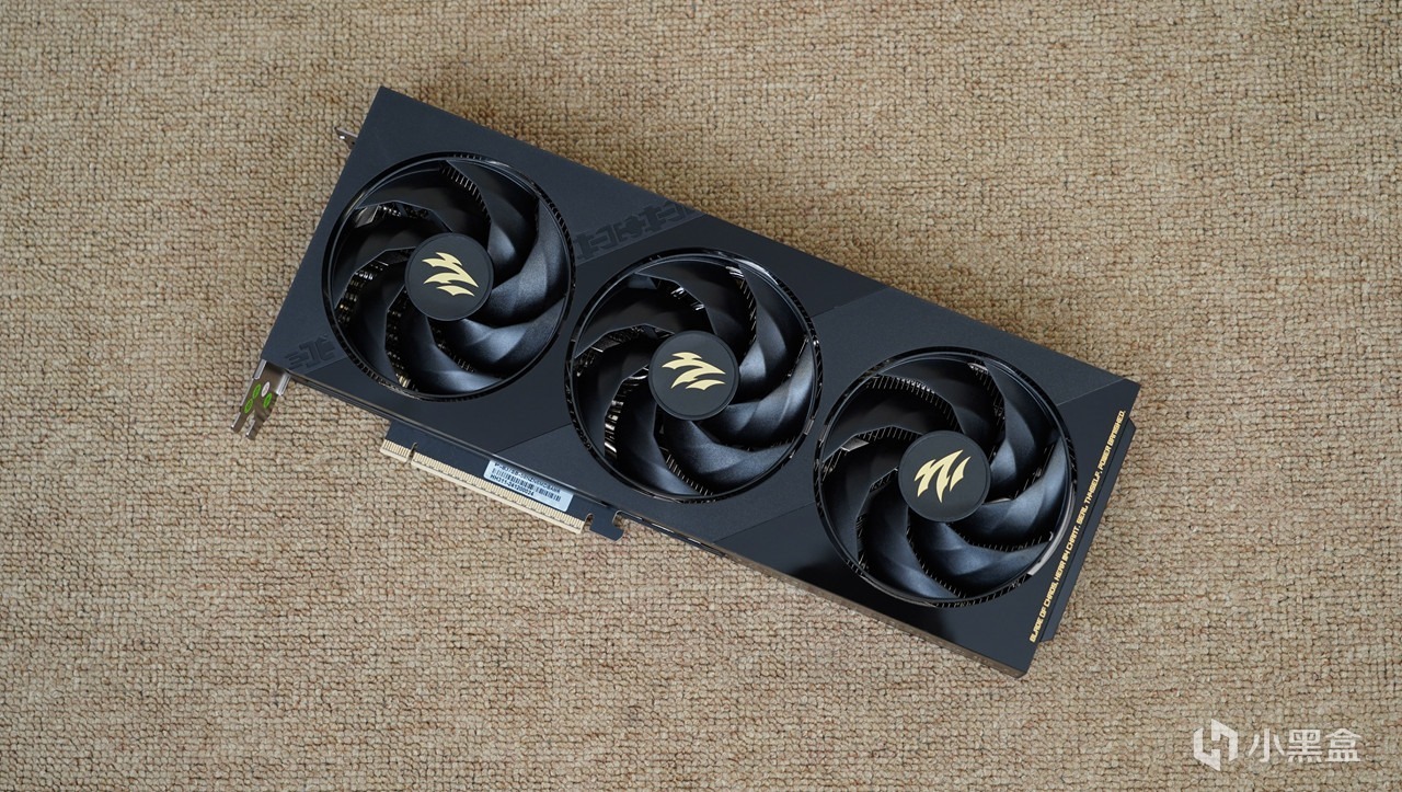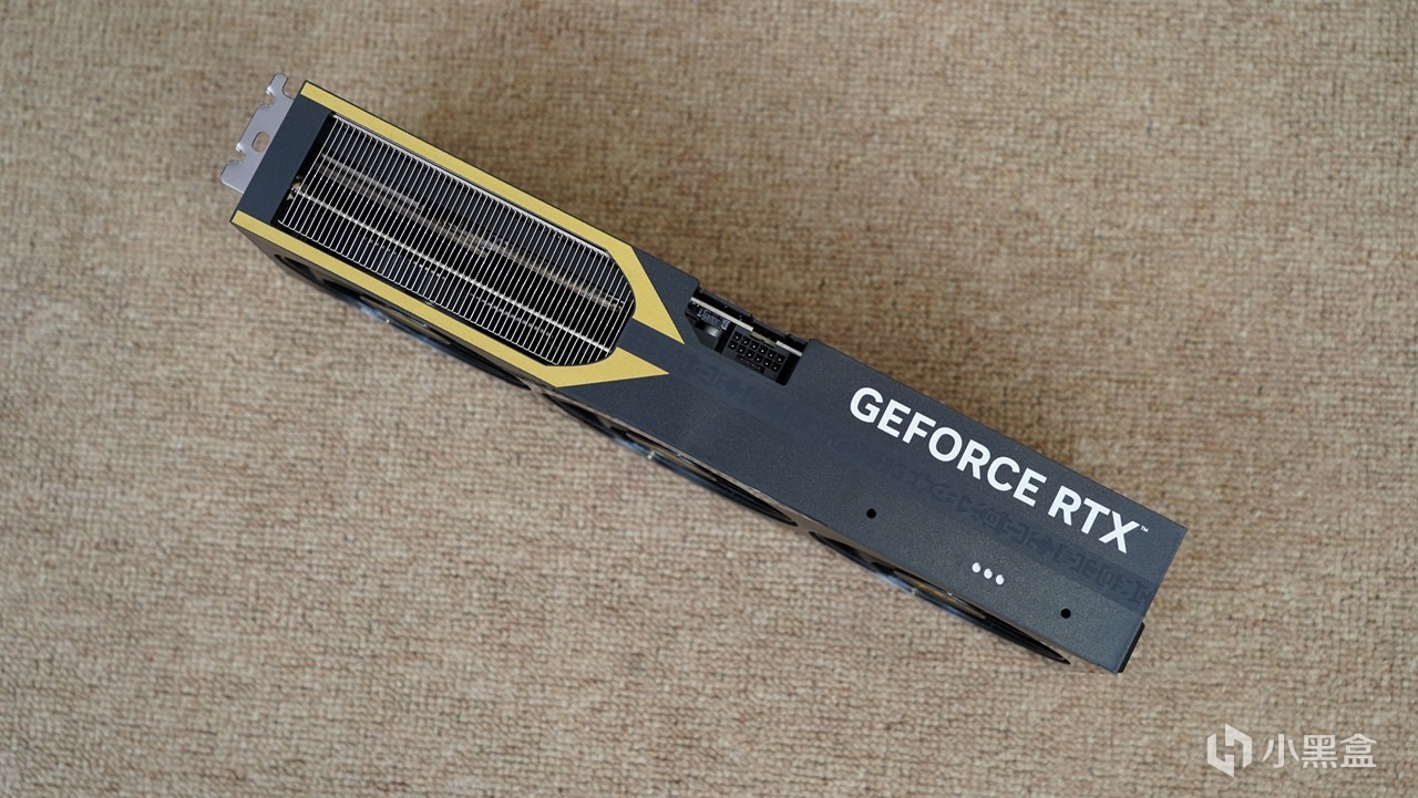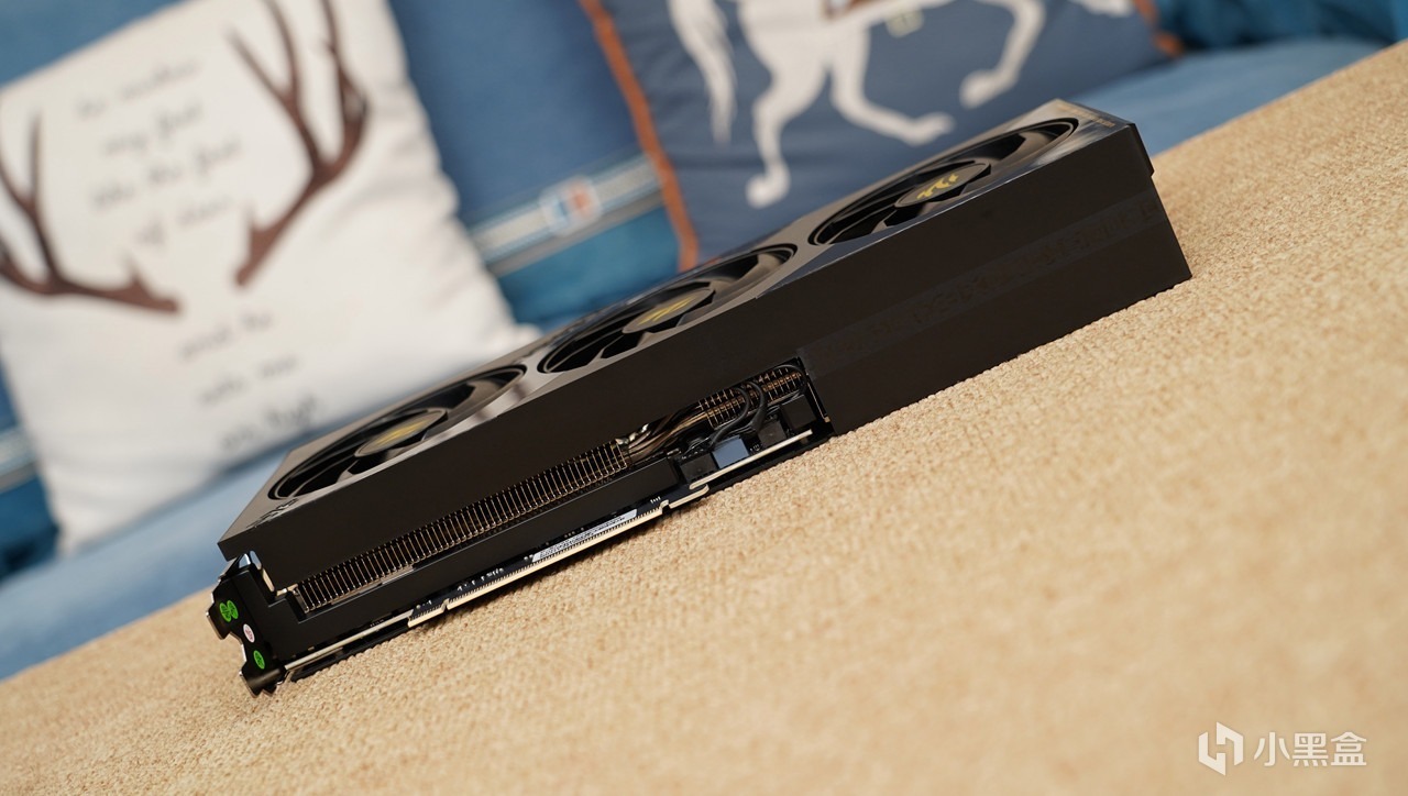 顯卡肩部一覽,可以看出,這一次顯卡的身材相對還是比較苗條緊湊的,該顯卡的體積也符合SFF-Ready尺寸要求,可以搭配ITX/MATX機箱組建Mini小鋼炮。