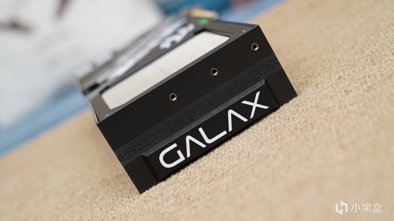 顯卡採用了GALAX Aurora RGB信仰Logo燈效設計,燈件採用磁吸式結構,玩家可根據自己的喜好將其安裝於顯卡肩部或尾部。