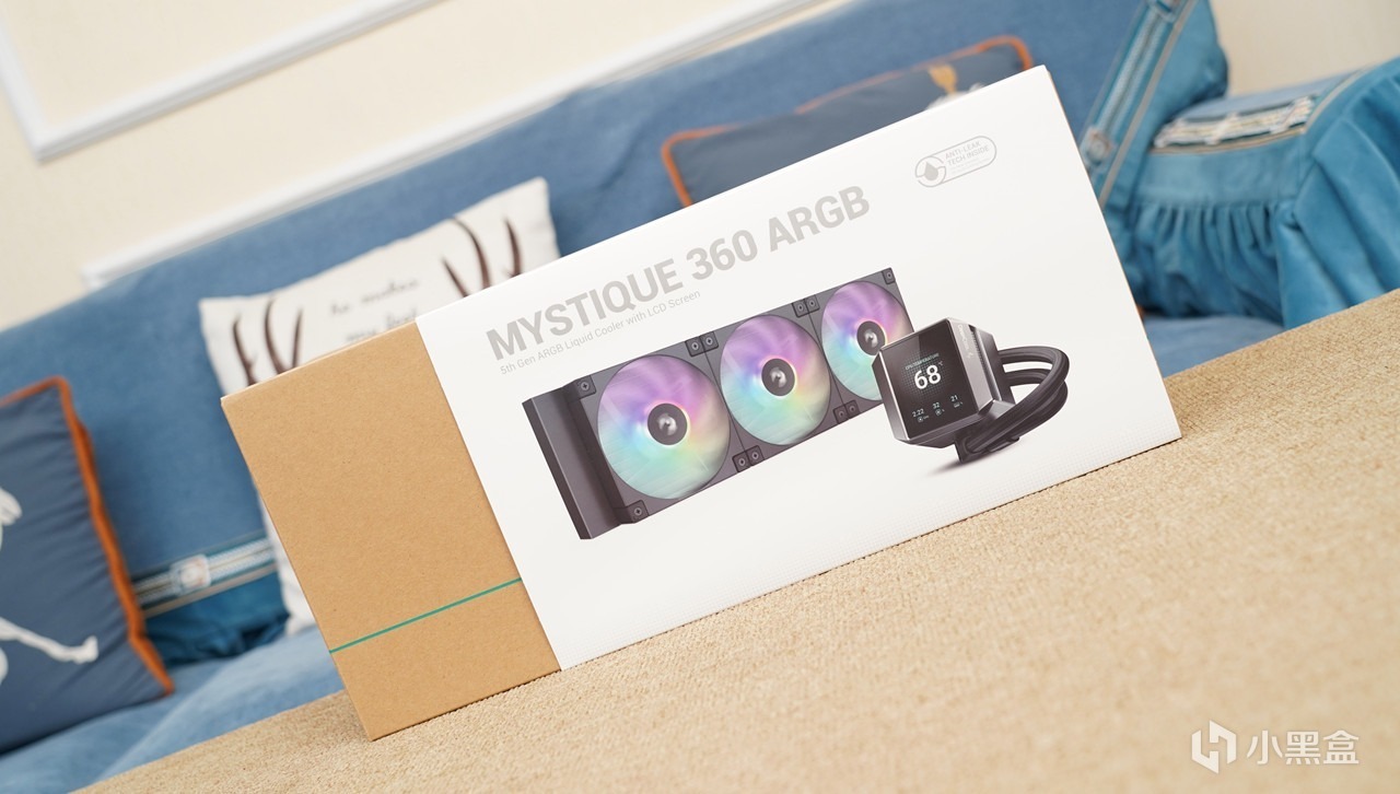 散熱器選擇了九州風神的旗艦級水冷——MYSTIQUE冰暴360 ARGB,該散熱器採用5代高能水泵,解熱功耗高達300W,性能非常強悍;同時散熱器創新性的加入了2.8英寸真彩數顯屏,能夠展示硬件信息,也可以自定義顯示主題,可玩性非常高。