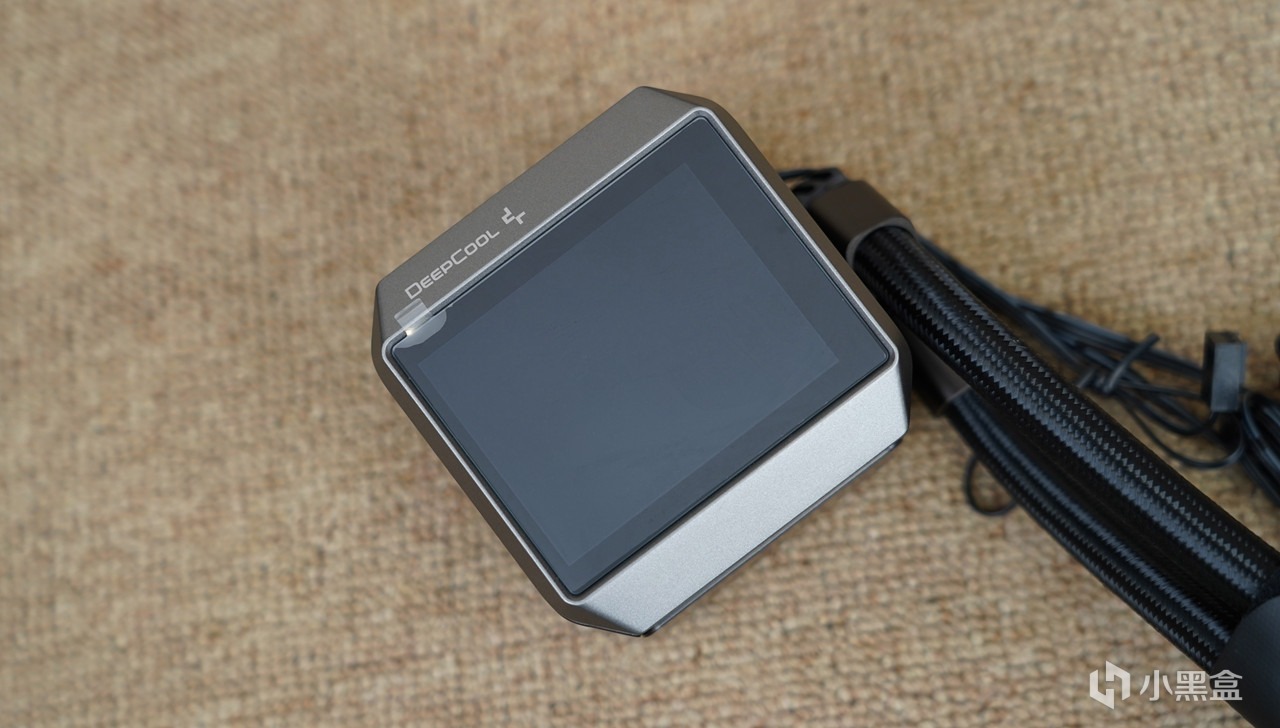 散熱器冷頭上蓋配備了一塊2.8英寸真彩LCD顯示屏,分辨率高達640*480,該屏幕配合智能控制軟件,能夠實時顯示CPU頻率、風扇/水泵轉速、電壓等參數,同時也支持自定義圖片輪播及GIF圖片,可玩性非常高。另外,屏幕還內置陀螺儀,能夠識別安裝朝向,並自動旋轉,讓顯示圖像始終處於正面位置。