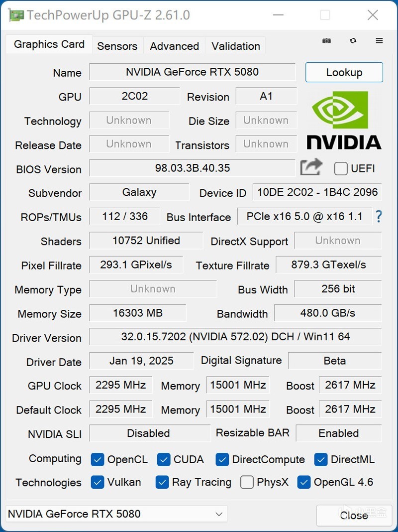 規格方面,這張影馳GEFORCE RTX 5080魔刃顯卡採用了GB203-400核心,擁有10752個CUDA處理器,其顯存也從RTX 40系的GDDR6X升級爲GDDR7,顯存頻率升級至30Gbps,數據傳輸速率有了質的飛躍。