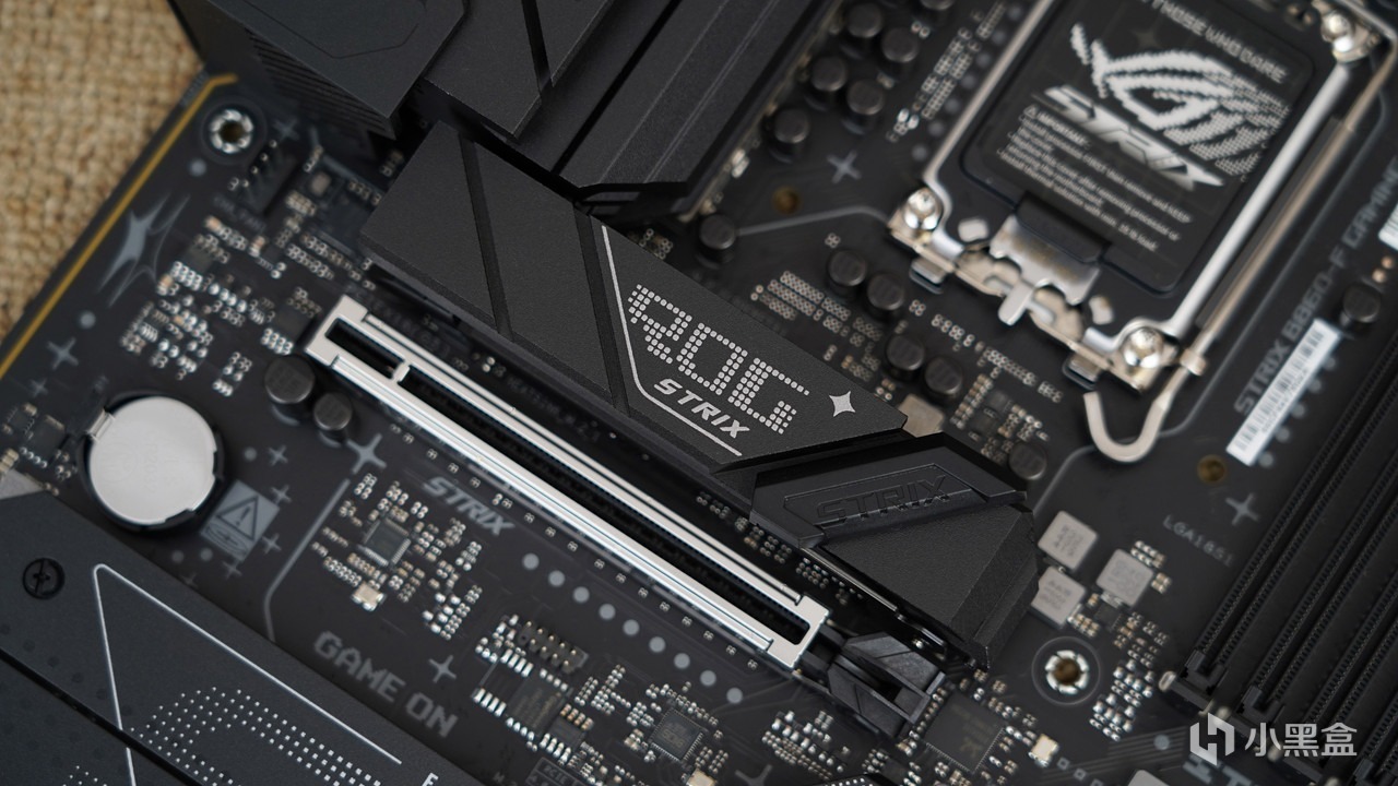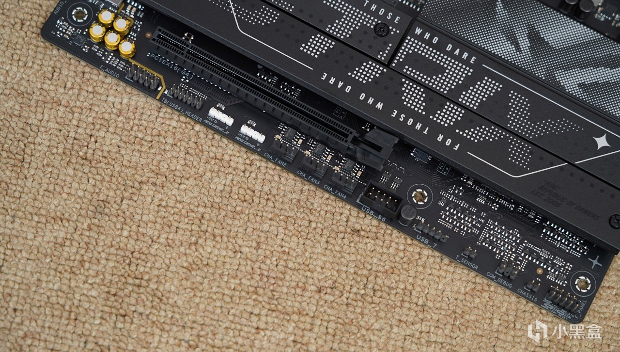 主板的下半部分也覆蓋了大面積的散熱鎧甲,M.2散熱片照顧到了每個插槽,這不僅大大保障了散熱效果,視覺效果也很不錯。