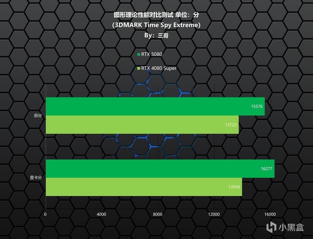 在該測試中,RTX 5080大幅度領先上一代的RTX 4080 Super顯卡。