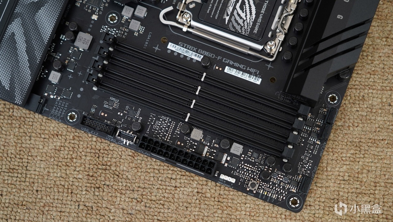 主板選擇了ROG STRIX B860-F GAMING WIFI,該主板採用了ROG常用的黑紅外包裝設計,經典大氣,視覺衝擊力十足。