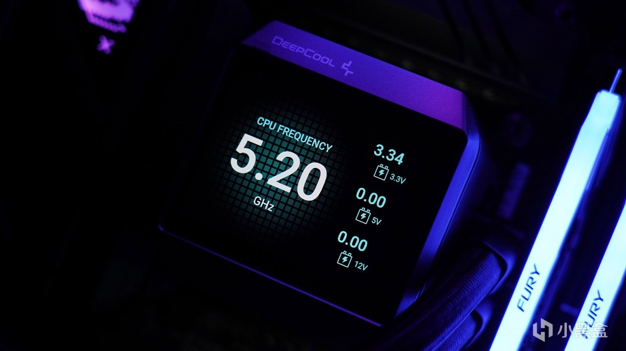 水冷頭的屏顯效果一覽,該屏幕還支持更換自定義圖片或動圖主題,可玩性非常高。