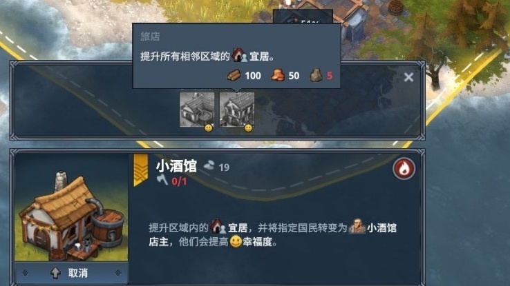 1.資源地塊建一級酒館+擴建+2級領地塞達到8宜居