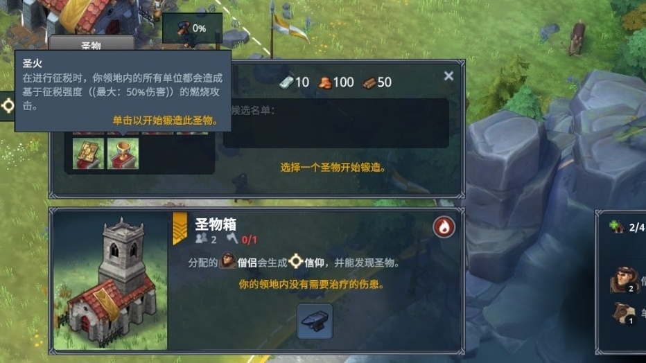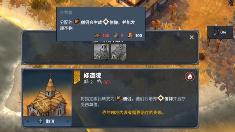 現在白鼬一般會早點在主基地造修道院點出德西瑪來增強賺錢能力,這樣科技也能稍稍提速,之後可以將主基地的修道院升級爲聖物箱鍛造聖物。