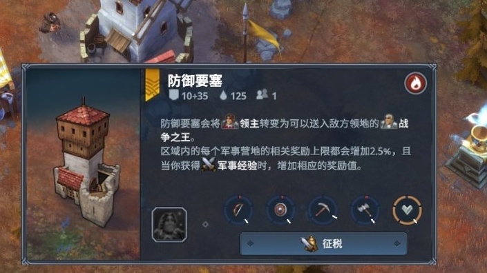 由於領地要塞是白鼬核心建築,而白鼬的要塞需要聲望解鎖建築上限,前期要在產糧和賺錢地塊上各建一個2級領地要塞,並儘快將這兩個地塊達到8宜居繁榮。