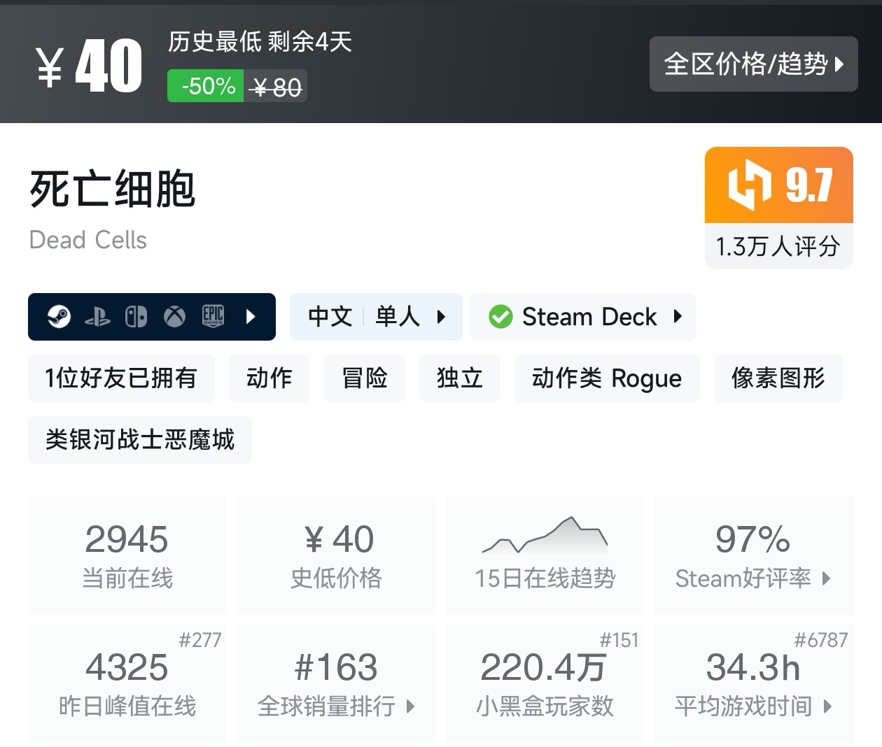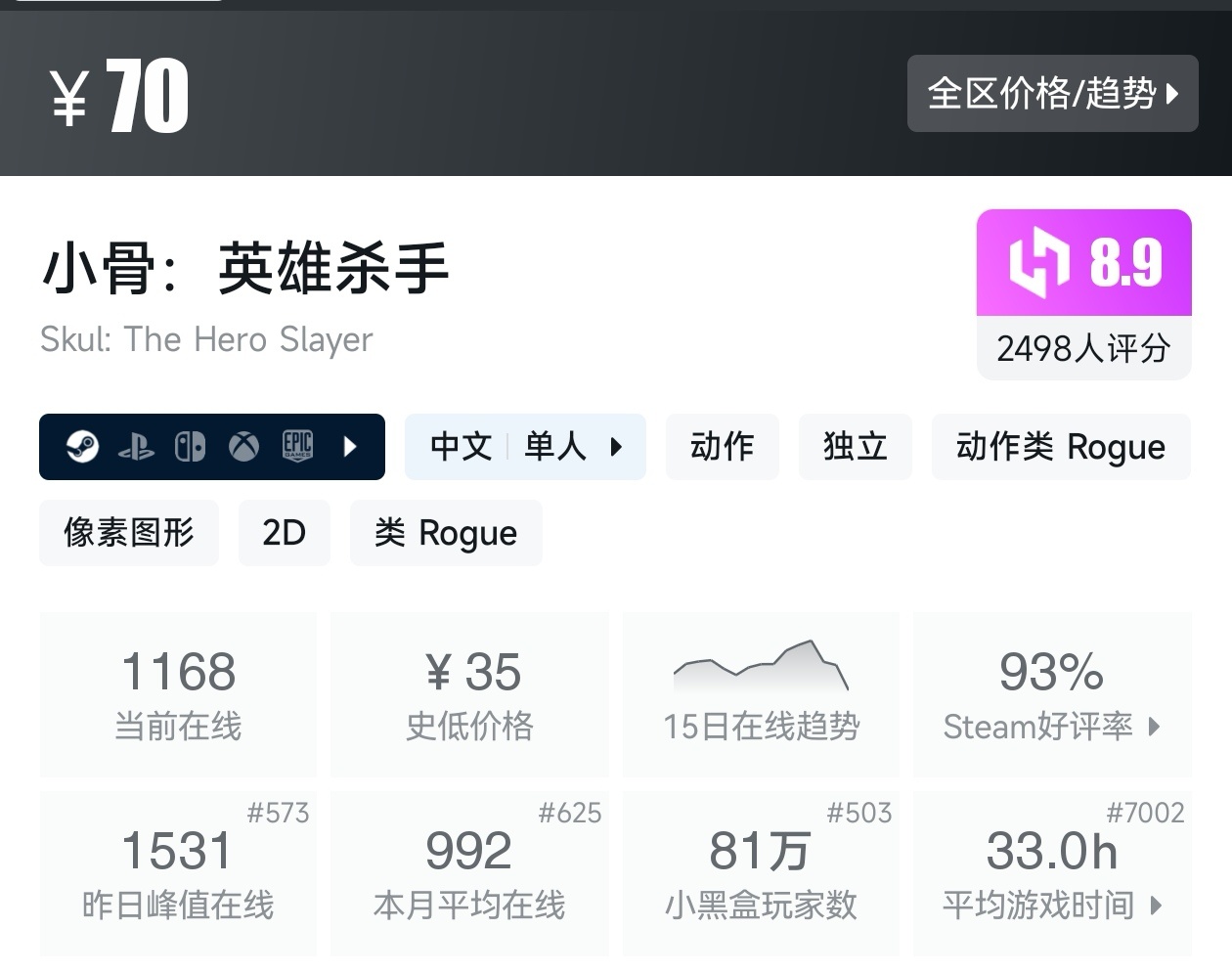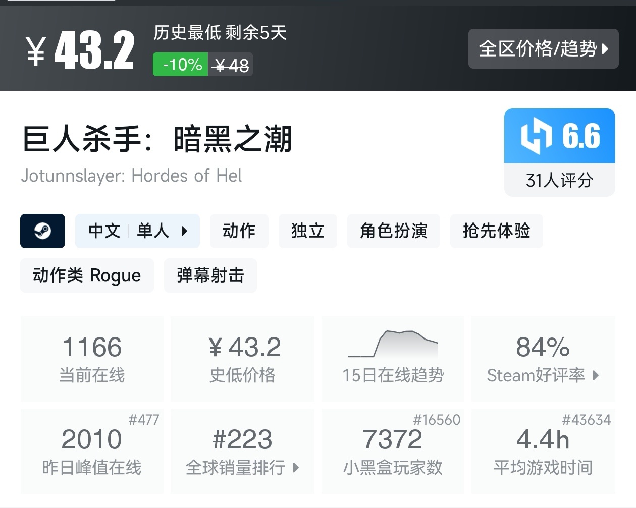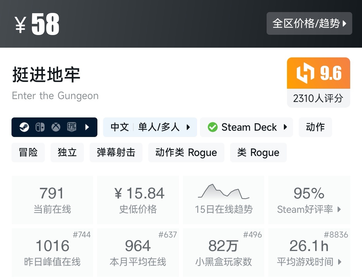 大家好,没错,又是我,那个肉鸽游戏爱好者,不知道各位喜不喜欢肉鸽游戏呢,其实肉鸽游戏经过很多年的发展,已经成为了独立游戏中重要的一个类型游戏了,以高度的正反馈带来的爽快而著称,那么,接下来我将为各位汇总一下新春大促期间参与折扣的肉鸽游戏,希望我的汇总,能够帮助各位盒友挑选心仪的游戏,当然,我玩过的将给出我的评语。