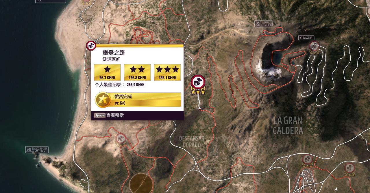 控車技術好的可以跑“攀登之路”,或者試試地圖左下方的“艾倫角”,三星難度較小。