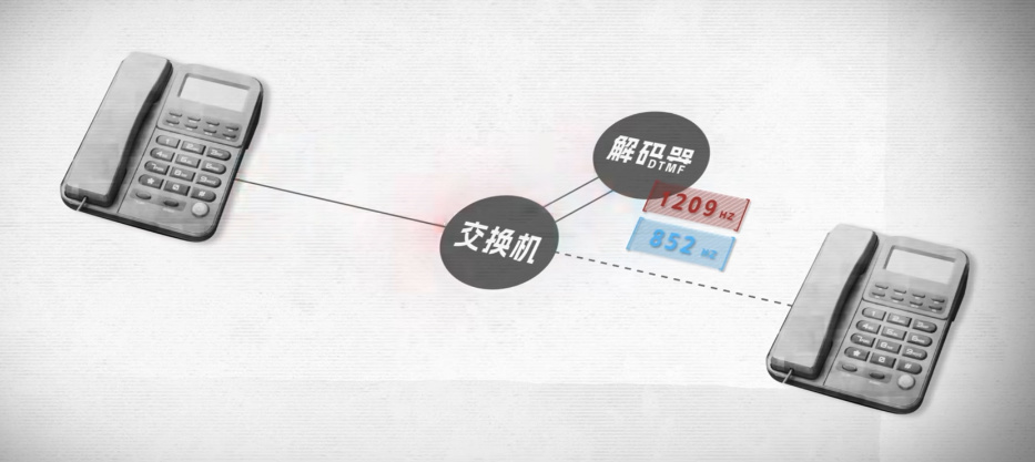 当你在按电话号码时,交换机会持续监听这串音频信号,然后传送给 DTMF 解码器。