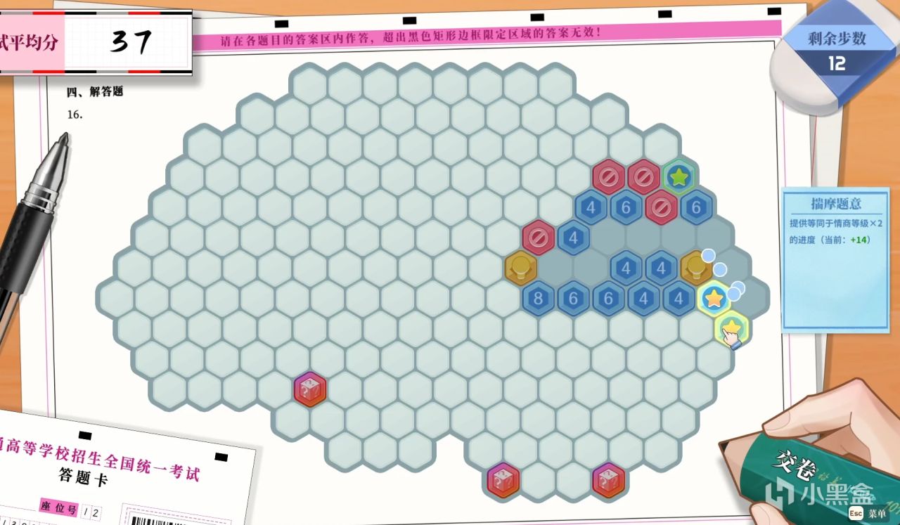 有不少玩家反饋過這個小問題後,製作組就將“情商”和“體魄”兩種能力作爲根據等級加分的兩種棋子放在了試題上,使三維屬性都能夠在考試中發揮作用。