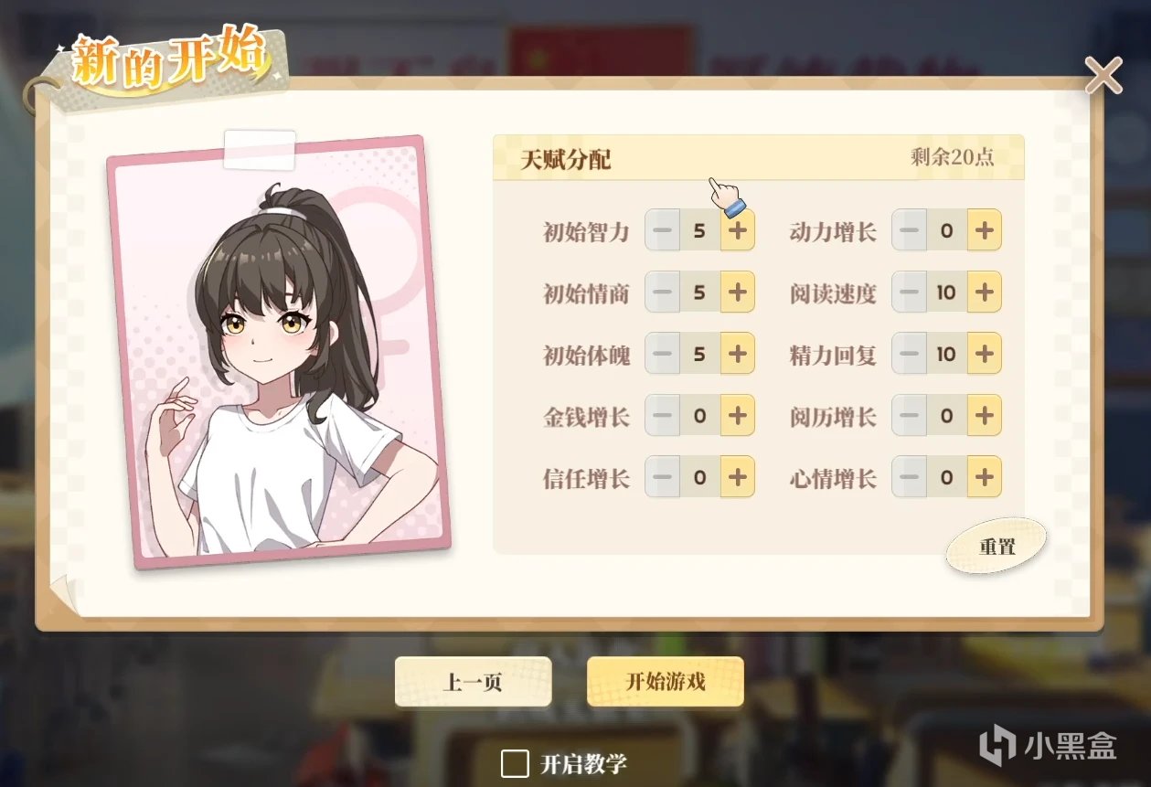 在遊戲的EA版本中(對比Demo版本),遊戲所消耗的資源不再是單一的精力——自主學習,將額外消耗一種名爲動力的資源,單回合內學習的東西越多,消耗的動力越大。這將防止體育生通過高精力無限刷學習(笑)。而且玩家需要分配好動力的使用,十分考驗規劃。