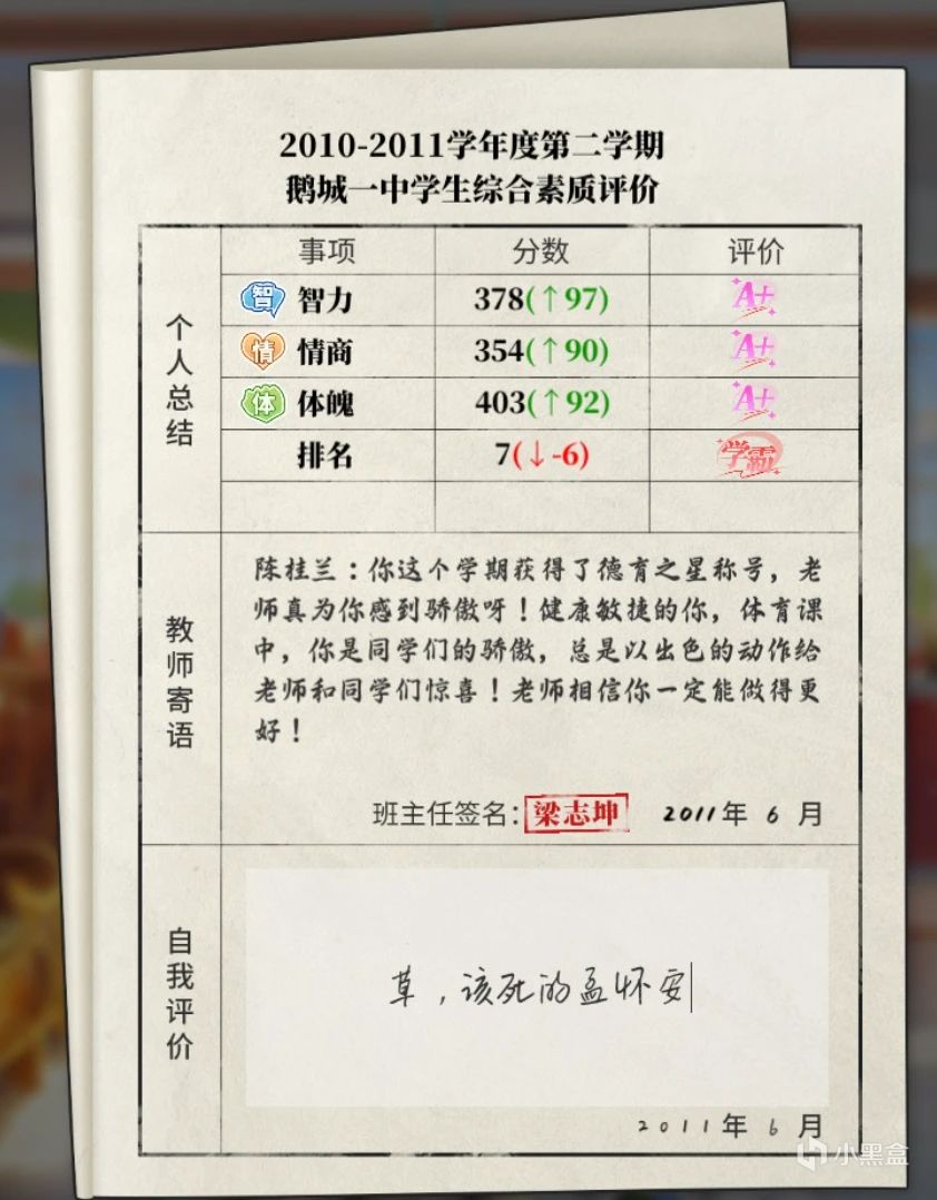 我認爲《學生時代》最動人的,正是這八名角色關於成長的“角色故事”,雖然在未了解過孟懷安之前,我認爲他是一個成天嘻嘻哈哈,打遊戲還莫名其妙能得第一的人,並在遊戲中的自我評價中,屢次對其進行人身攻擊。