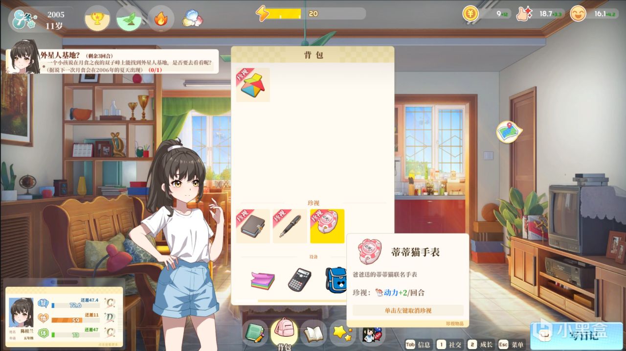舉個例子,在Demo版本中,玩家就進行的每次期末考試,它的考試方式主要檢驗的是各項知識掌握的情況與智商這個屬性的高低。而在全面培養人物的時候,情商和體魄作爲重要三維的其它兩維,在考試中無法發揮作用——這在現實中比較合理,但作爲遊戲,就沒有將三維屬性很好的利用到考試上。