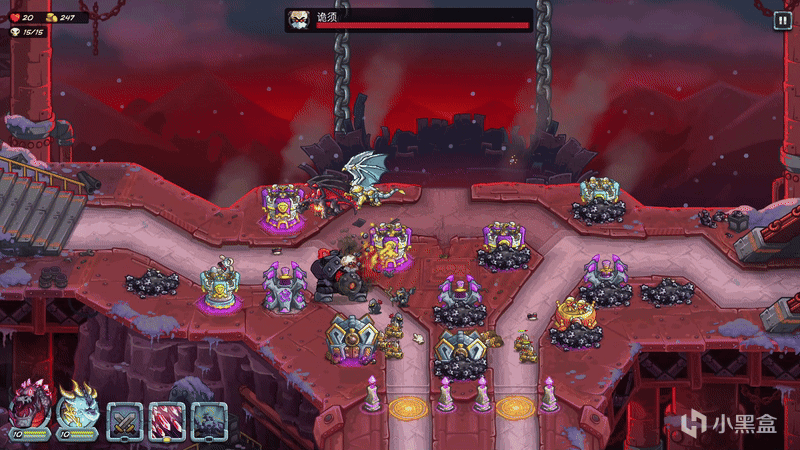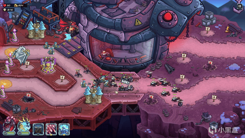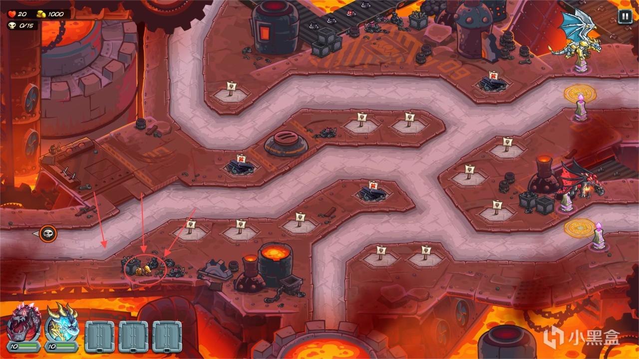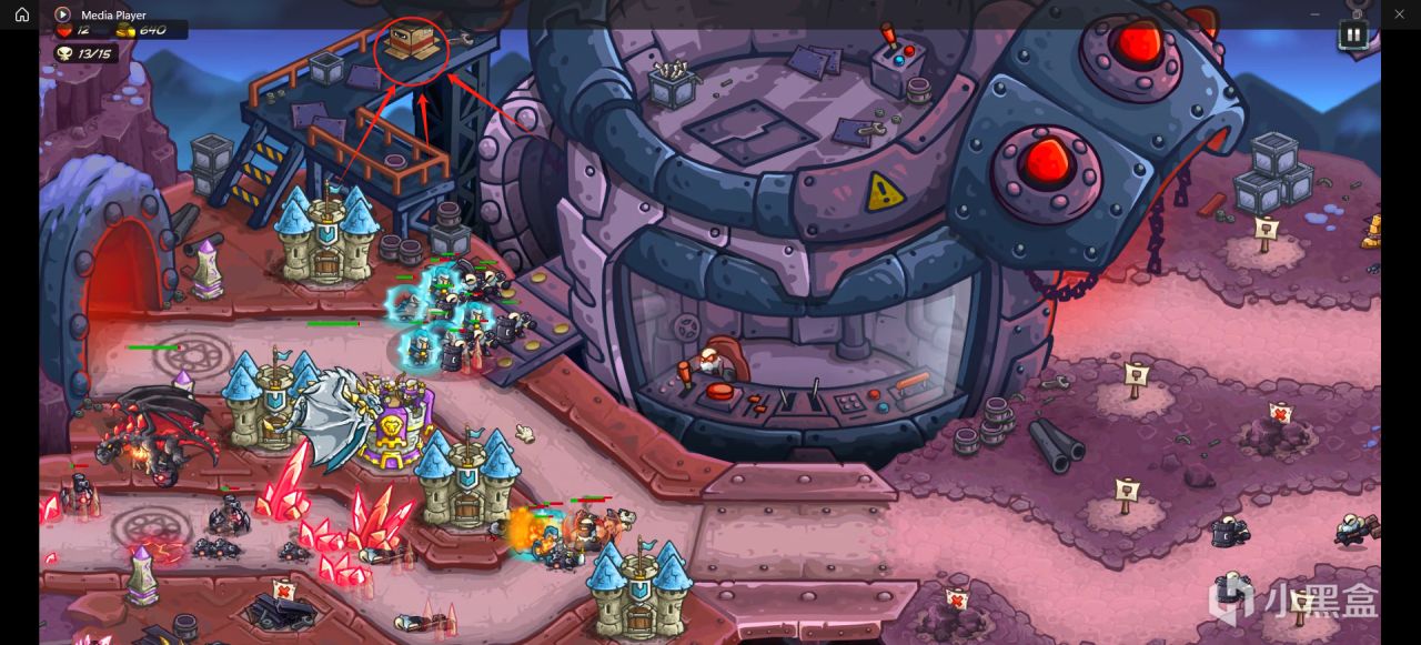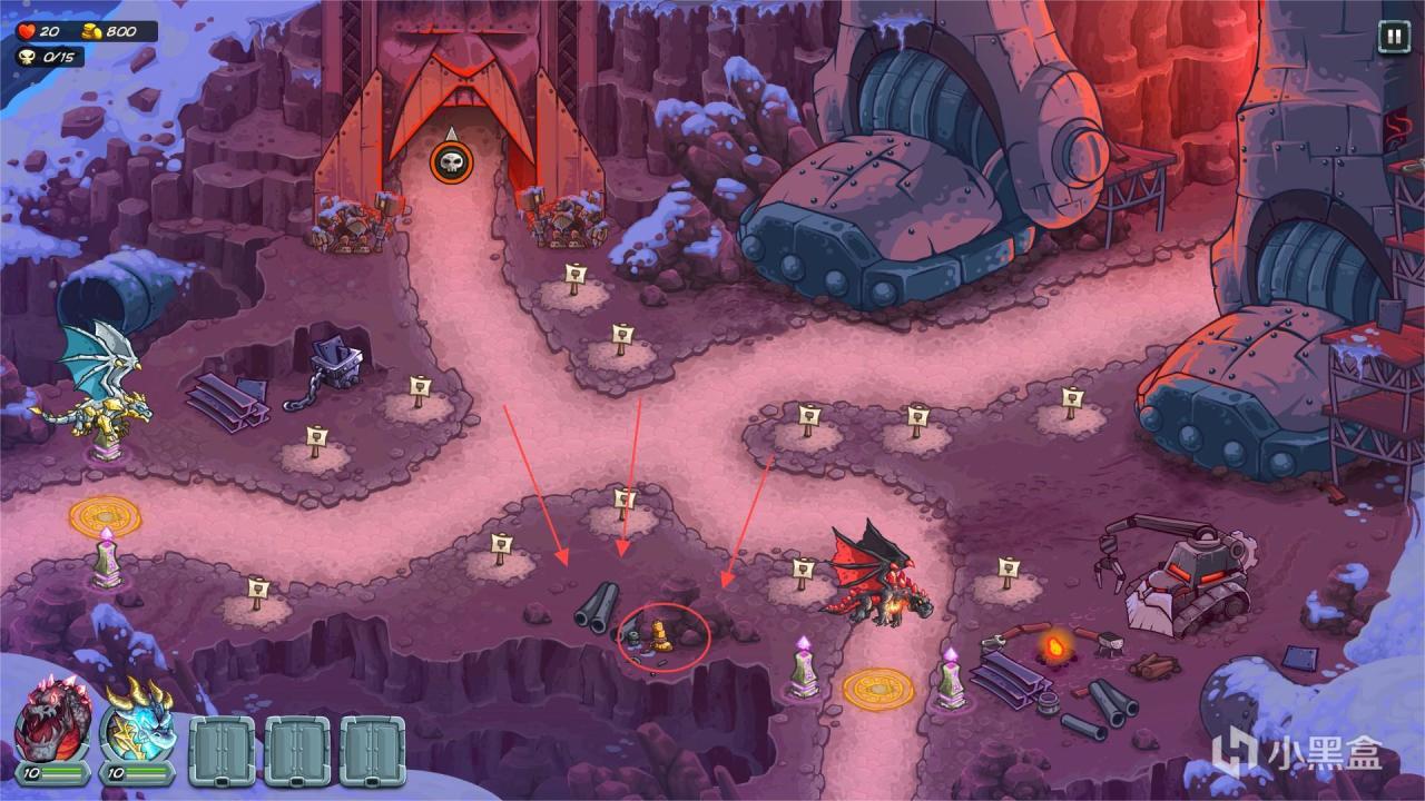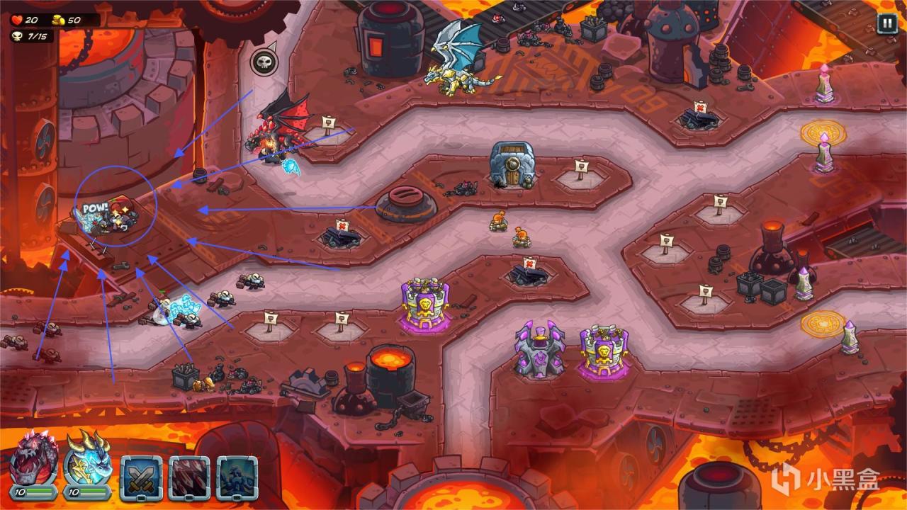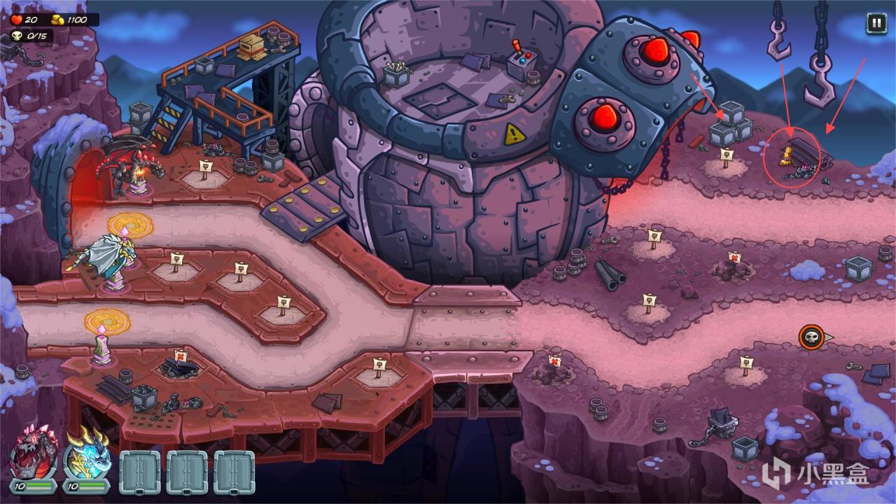 在关卡25、巨型核心,第八波才会出现诡须去操纵大铁拳和导弹,我们需要让大铁拳砸到敌人20个!在这里我使用兵营进行堆怪,注意这里只有15波之前的会出现大铁拳,15波他只会发射导弹!