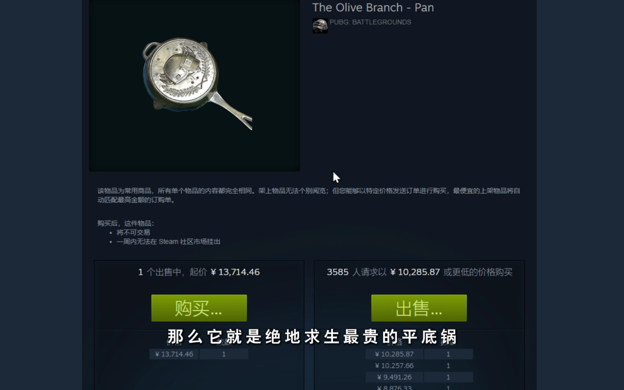 這把平底鍋已經成爲名副其實的絕地求生“最貴平底鍋”。