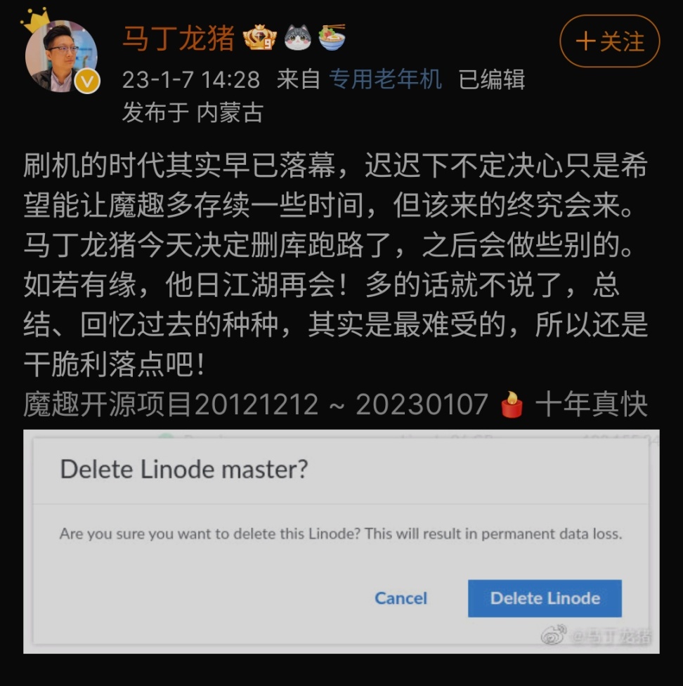 1月7日,国内知名的第三方开源项目魔趣创始人表示:刷机的时代其实早已落幕,迟迟不下定决心只是希望魔趣能够多坚持一段时间。但是计划总是赶不上变化,所以他今天决定“删库跑路”。
