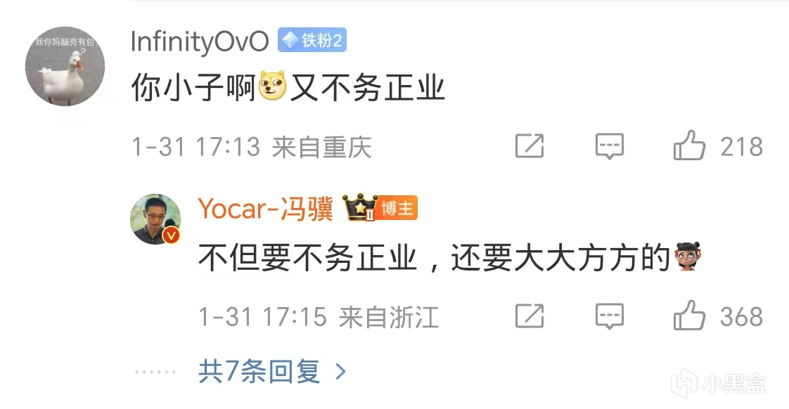 1月31日馮驥發佈微博:祝賀大家初三好,並聲稱:“你們的牢卡又來不務正業了!”。前有力推DeepSeek,中有談其對”宅“理解,後有吹《哪吒之魔童鬧海》。咱馮老真會給大家整活!