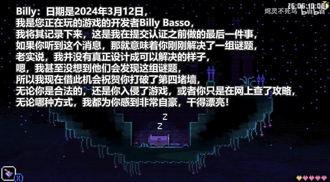 解决掉游戏中最难的谜题后,玩家还会收到一个颇为温馨的彩蛋奖励:开发者录音,它记载了Billy、Dan(Billy的好朋友,帮忙做了营销工作)、Dunkey