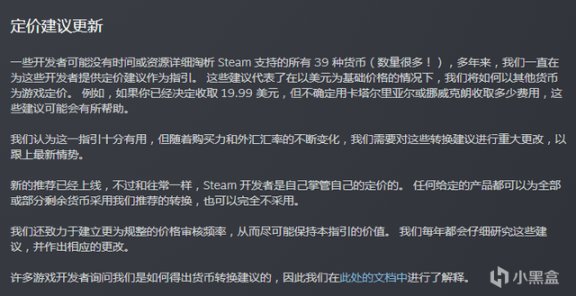 在今年10月的時候Steam更新了定價工具和定價建議,V社對不少低價區(阿根廷、土耳其等)的遊戲指導售價做了調整,並且自家遊戲也在低價區率先調整了售價。