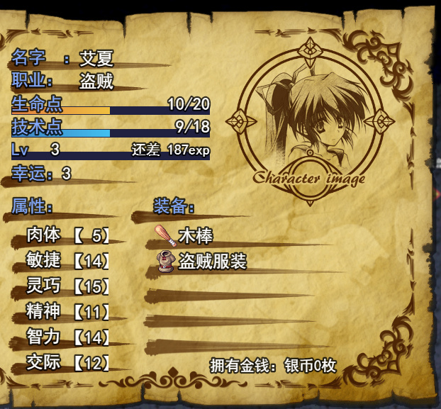 Lv 等级 升级提高角色属性,角色每升3级加1点技能点用于解锁技能,角色最高13级(第三部)
