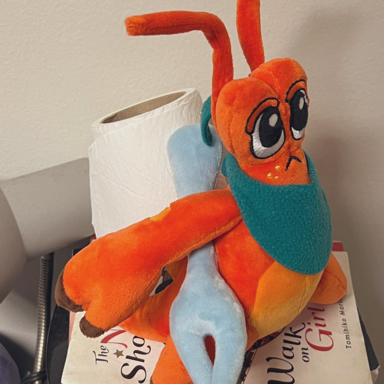 开发者小哥前两天发了一张照片,他真的给蟹蟹玩偶套了个卫生纸壳 绷不住了 小蟹原地变身卫生纸托架。