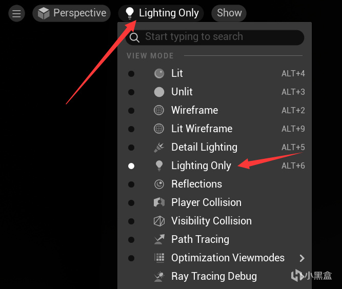 在这个视图下可以不渲染贴图和材质情况下只渲染光照信息(包括法线和AO)。从这里可以方便观察你设置光源的颜色和生效范围,避免模型材质对灯光效果的干扰。