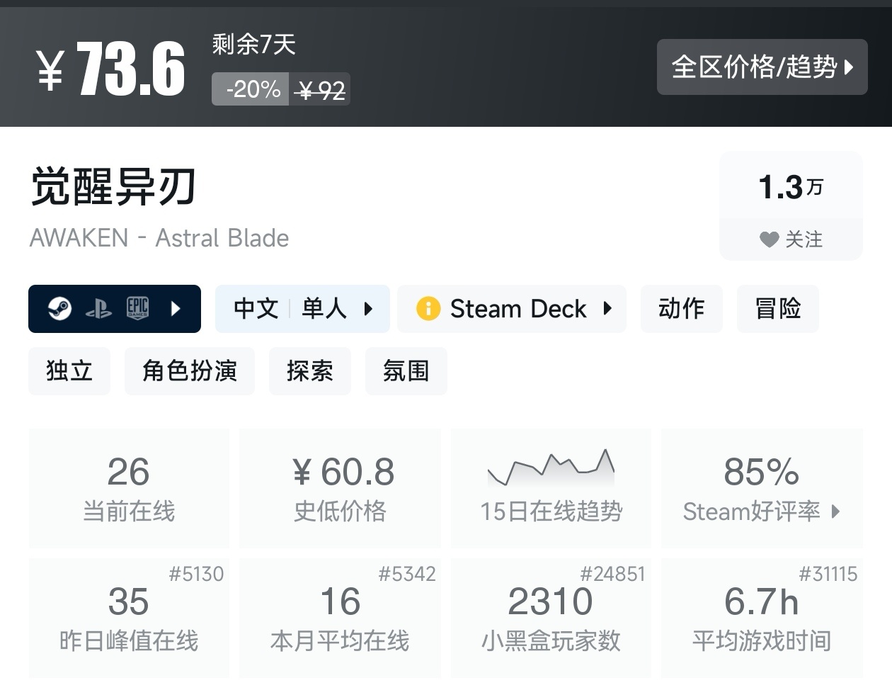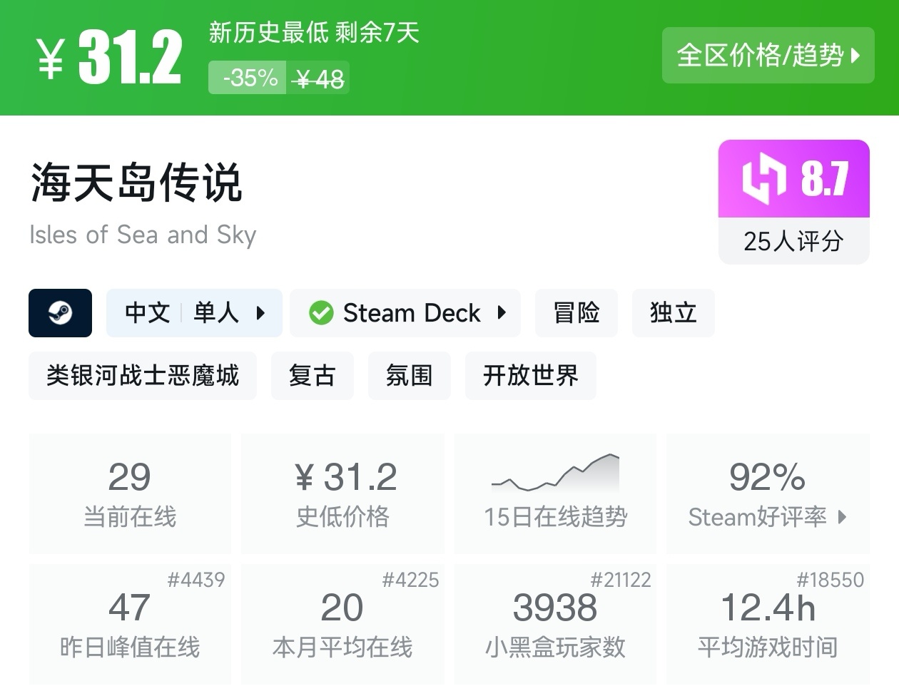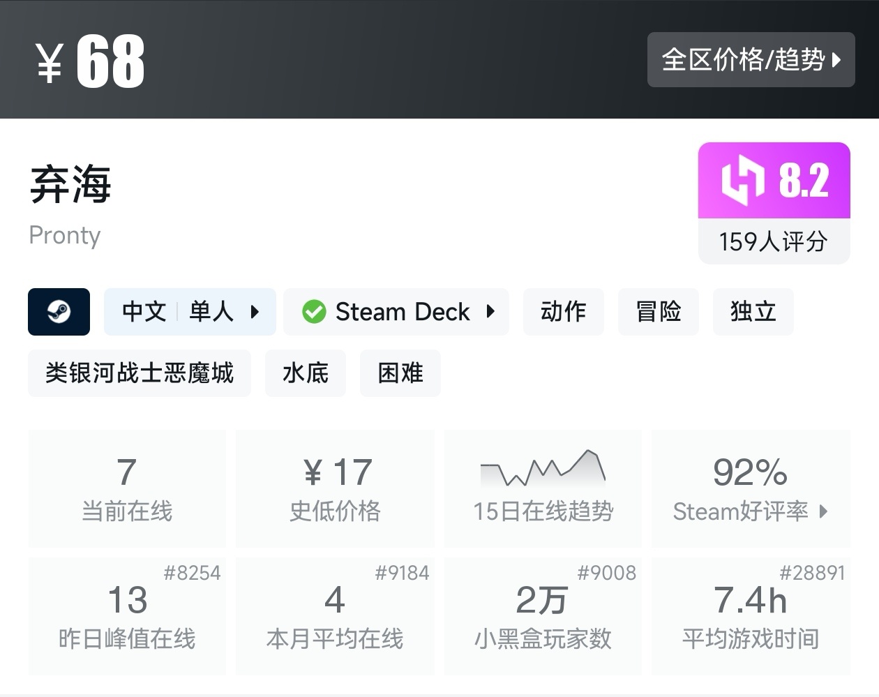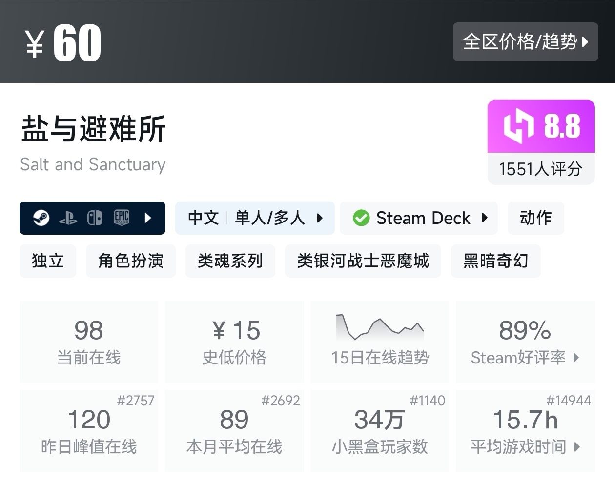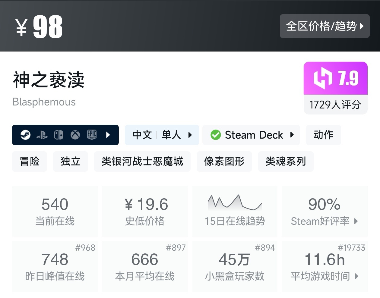 大家好,转眼我们的新春大促不同类型游戏的折扣汇总,就来到了很多独立游戏爱好者喜欢的类银河战士恶魔城游戏类型了,这个类型的游戏,视角虽然是2D的,却能创造出不亚于3A的感动,最大特点就是地图是连通的,我想给大家带来一个汇总,希望我的汇总,能够帮助各位盒友挑选心仪的游戏。