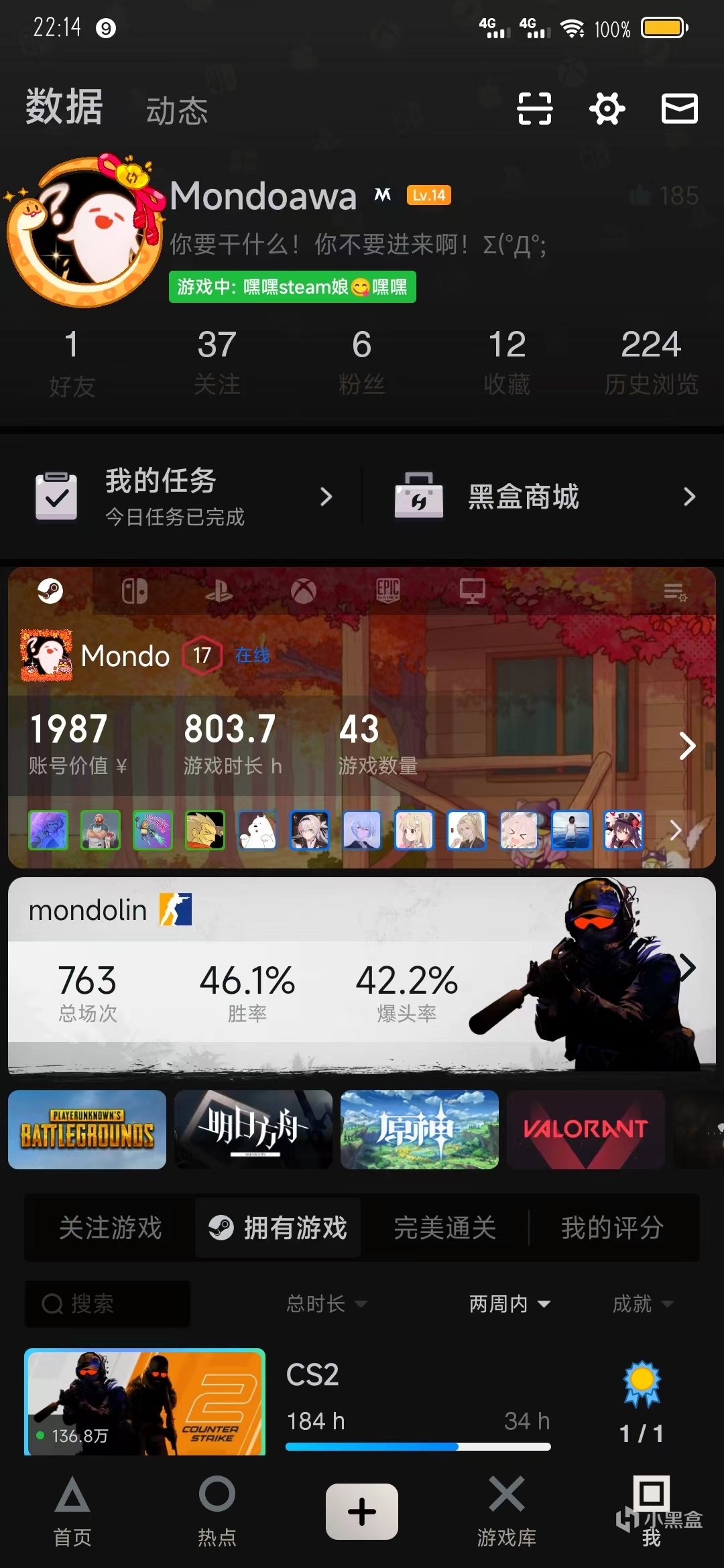 5.點擊:添加“按鈕後就可以在你的黑盒主頁-我的看到狀態啦!