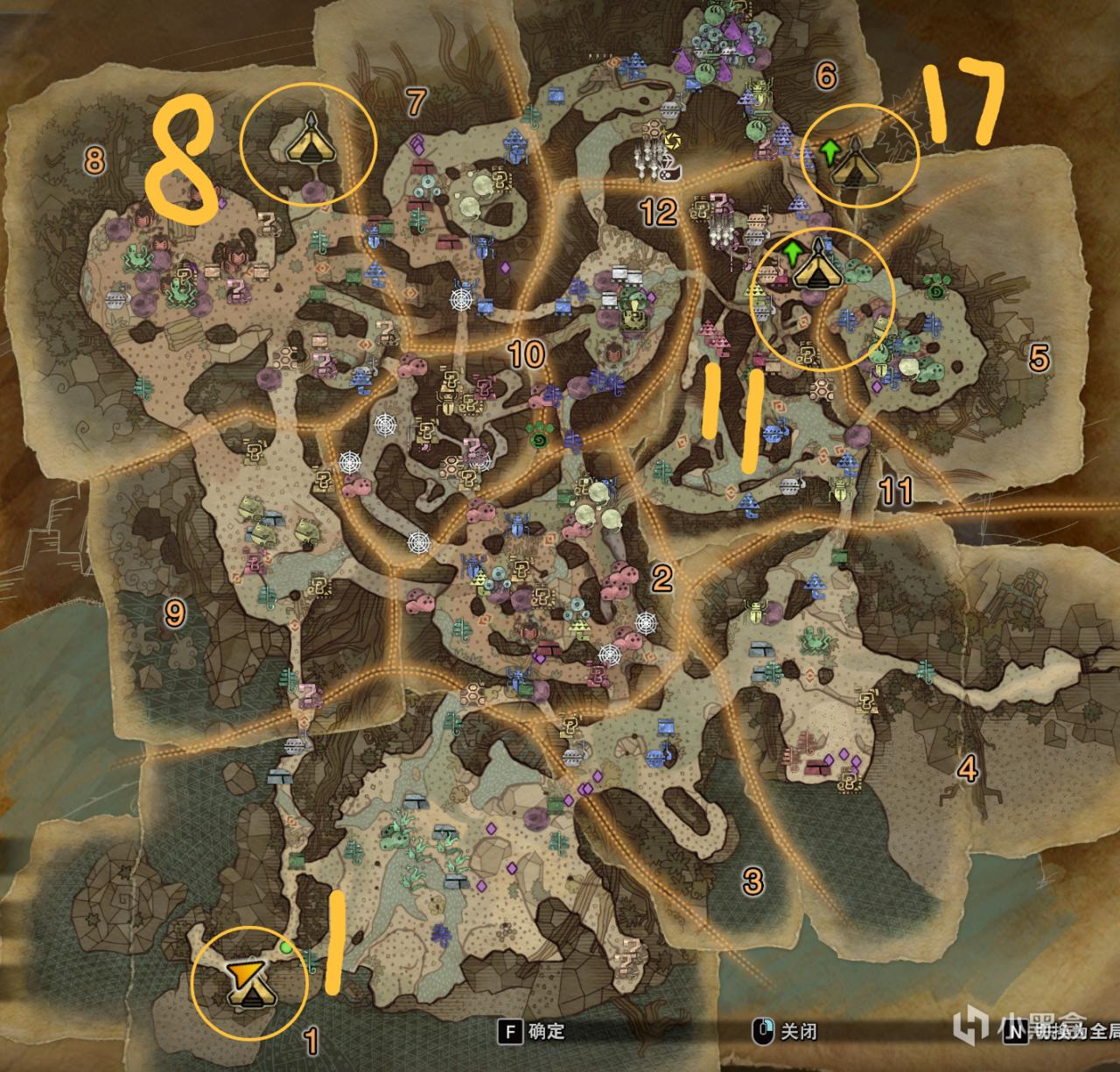 其中17號營地是位於高處,在圖片標記處的更上方,直接走到我的標記是解鎖不了的。