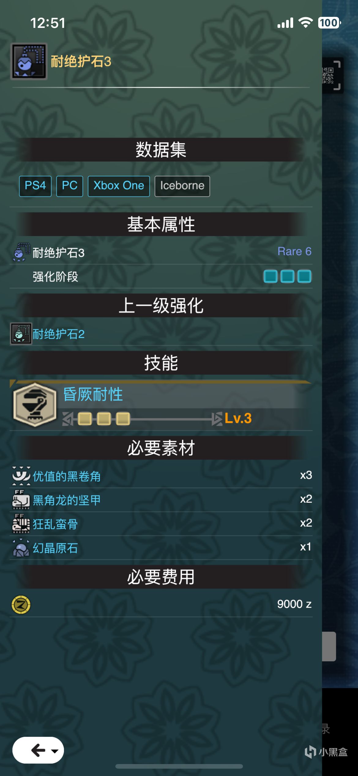 耐撅護石需要上下位眩鳥素材和上位黑角龍頭部破壞素材,黑角龍可以通過先挑戰活動角龍和黑角龍的任務後解鎖單獨的自由任務,黑角龍實力“很強”!!!可以在冰原先取得一套大師裝備再回頭輕鬆挑戰