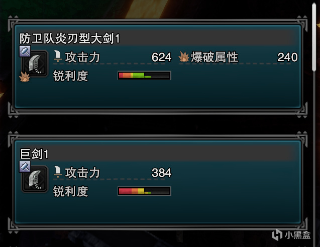 防衛隊武器在同時期都只需要一顆鐵礦石的情況下,攻擊力,斬味(鋒利度)遠遠高於同時期武器,且攜帶爆破異常屬性(攻擊積累爆破異常值,疊滿觸發一次固定傷害爆破),非常厲害!