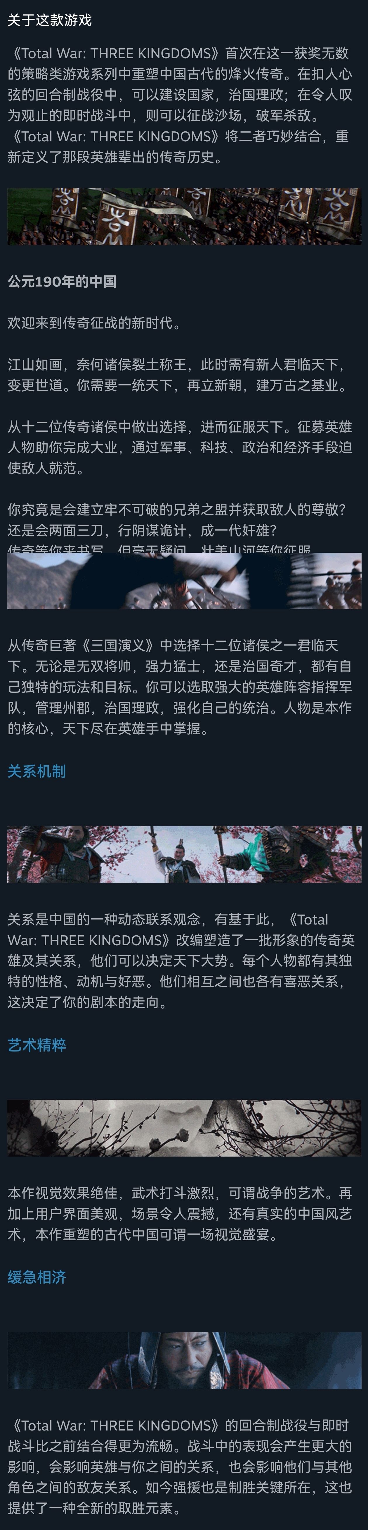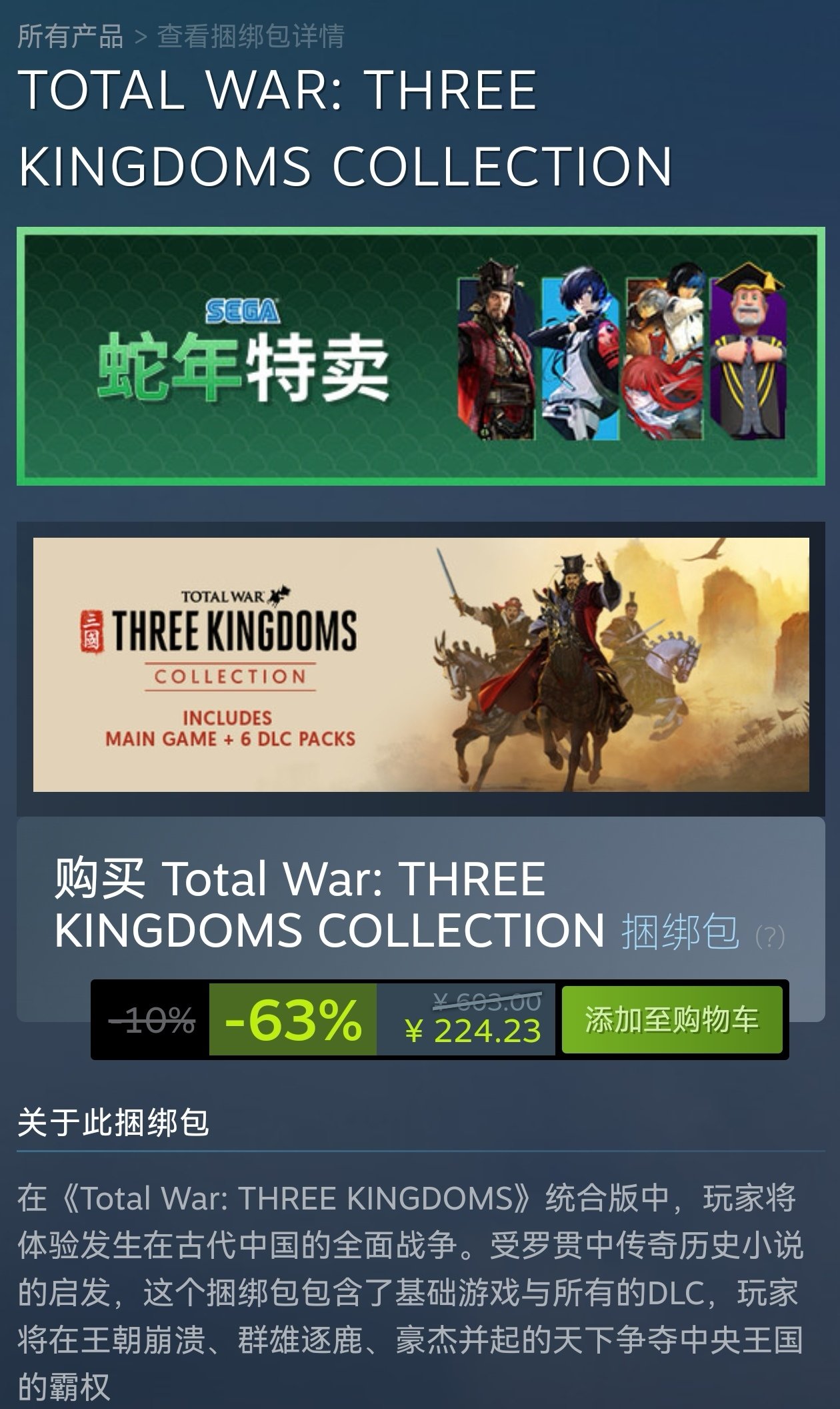 大家好,今天《全面战争:三国》的新史低折扣就即将结束了,这款是世嘉开发的以三国为背景的全面战争,距离折扣结束时间已经不到24小时了,就是说在明天的凌晨两点就会结束此次的新史低了,不知道下次还会不会是这个价格。