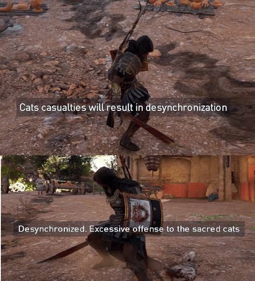 此外該玩家曬圖:遊戲中玩家會因爲殺埃及貓而失去同步,而當一名日本人說神社被破壞是不尊重日本文化時卻被告知,“你也可以去《AC2》砍教皇啊”。
