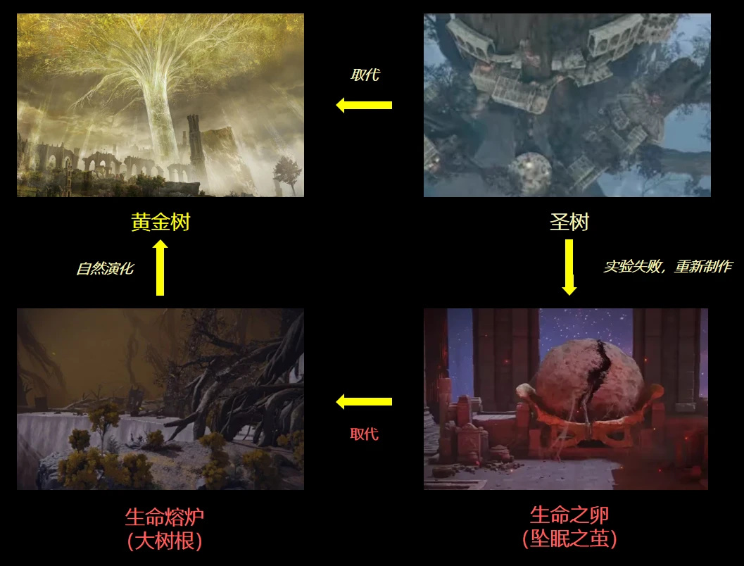 按照對稱敘事的表現手法,若“聖樹”對照“黃金樹”‘,那“眠卵”對照的就是“生命熔爐”。米凱拉想要創造一個包容所有生物的世界,這便是他的“生命之卵”。