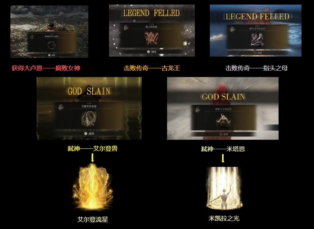 只有米凱拉和艾爾登獸在擊敗後擁有“弒神”的文本信息,就連瑪蓮妮亞、古龍王、指母都沒有這樣的標題。