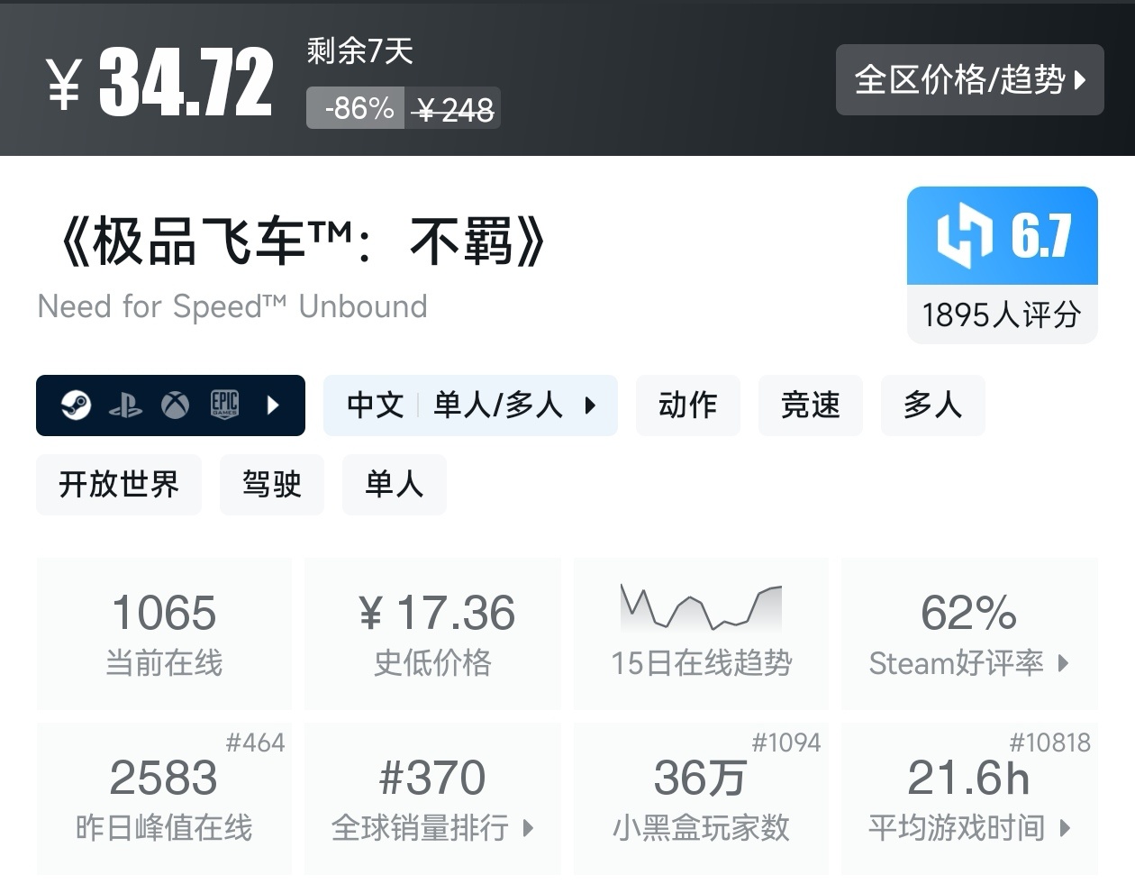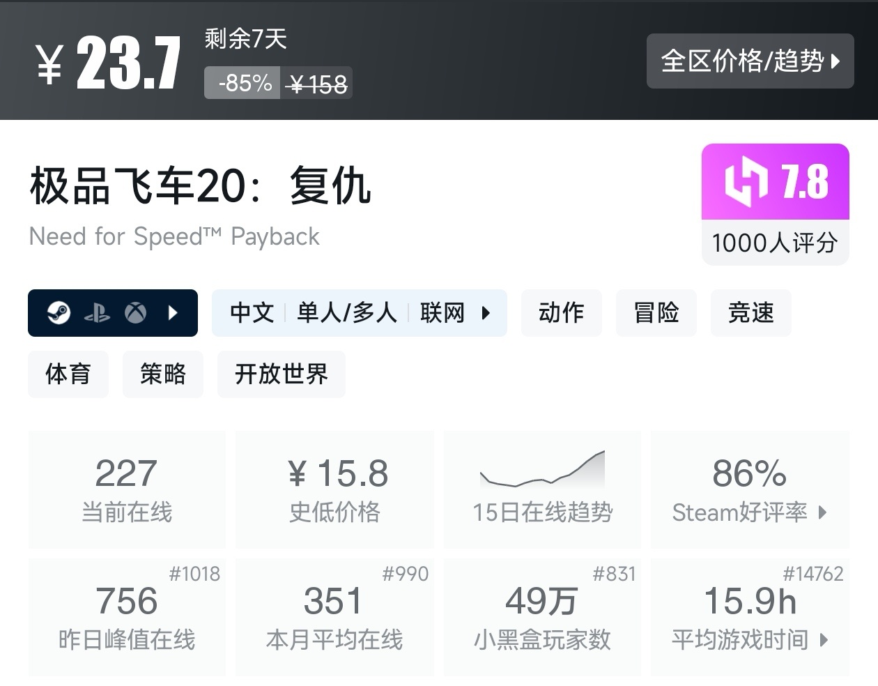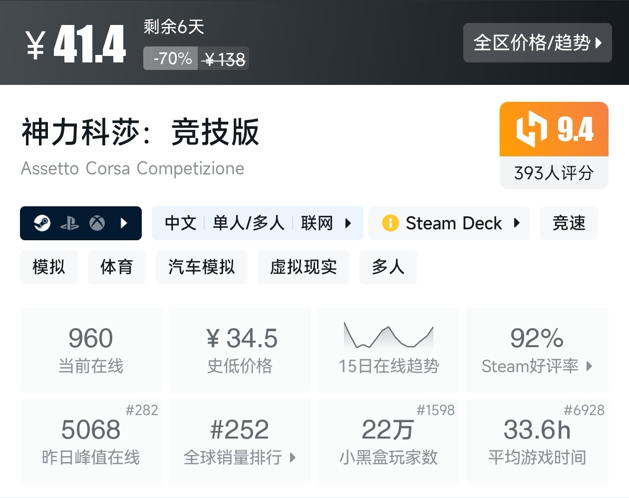 大家好,不知不觉我们的新春大促不同类型游戏的折扣汇总就来到了赛车竞速类型的游戏了,赛车竞速类型的游戏在于技术比拼与心态较量,我将给大家进行一个汇总,希望我的汇总,能够帮助各位盒友挑选心仪的游戏。