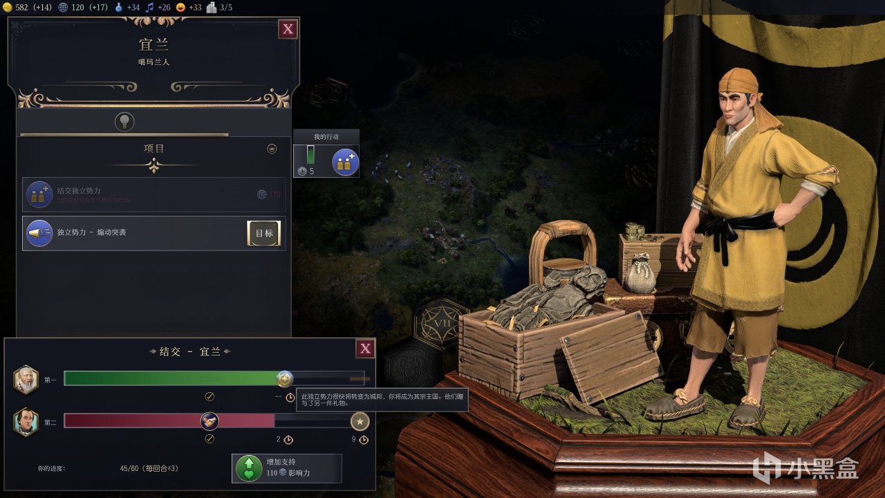但是你可以用外交影响力改善和他们的关系,达到一定程度之后甚至可以将其纳为藩属国,获得额外的BUFF收益,可以发动他们讨伐共同的敌人,你还可以投入更多的外交影响力来发展你的“藩属国”——这还是蛮有代入感的,众所周知,在唐汉等时代,我国同样拥有过大量的藩属国(朝鲜、越南等)。
