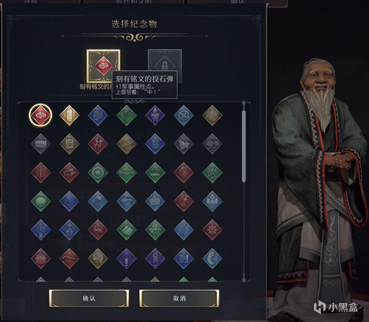 领袖可以选择“纪念物”,获得一个非常强力的加成——比如很早期可以获得的“刻有铭文的投石弹”能够+1军事属性点,而“致埃阿纳齐尔的投诉泥板”可以+1经济属性点,领袖属性点在游戏流程中需要较为复杂的前置条件来解锁,如果你可以直接带着+1属性点开始游戏,相当于可以“跳科技”,从来达成一些特化的养成效果。