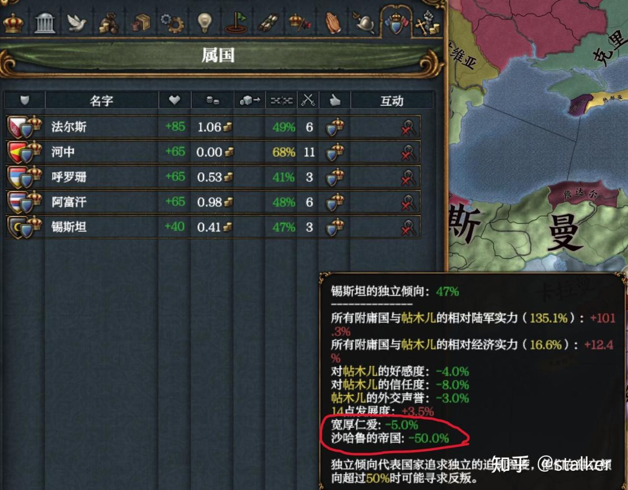 沙哈魯一己之力降低了附庸55%的獨立傾向