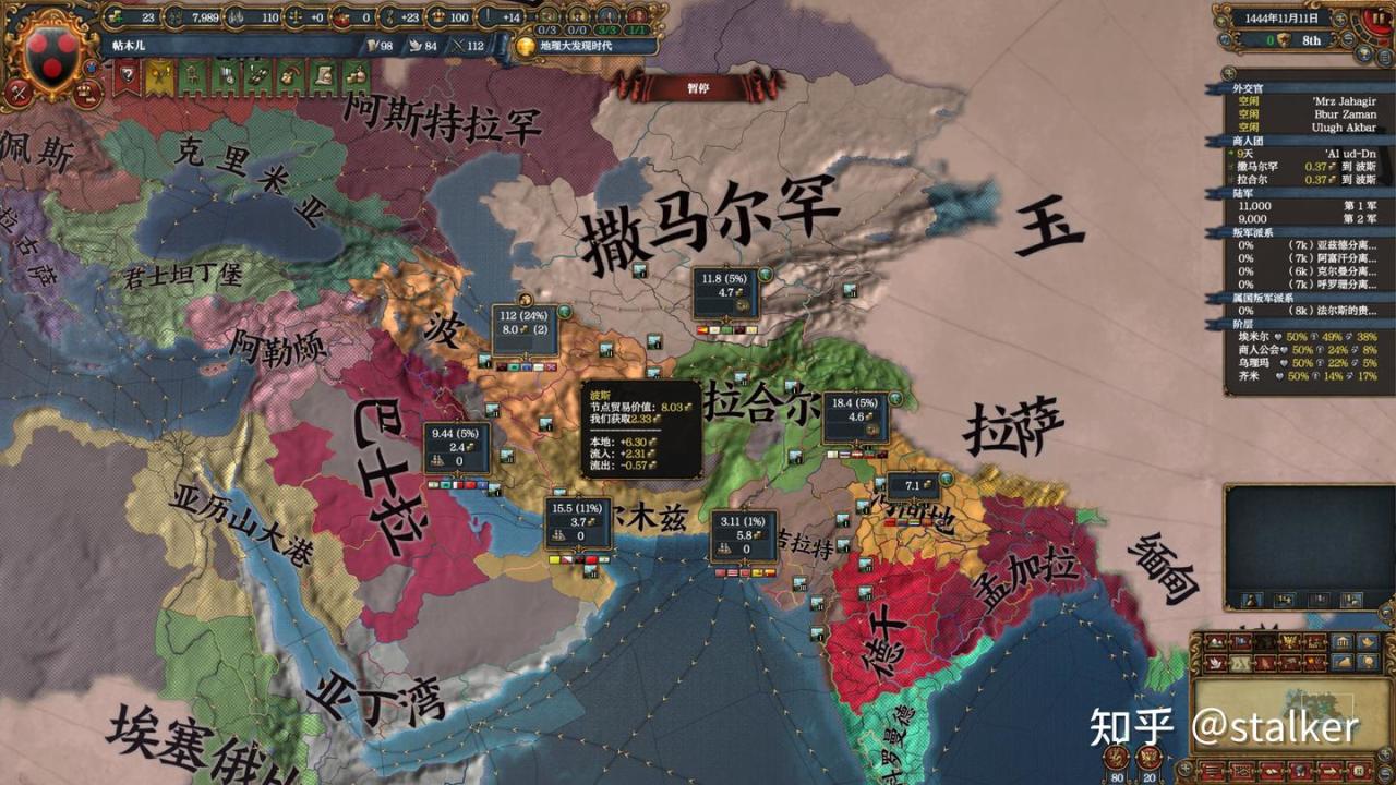 西進路線主要是遏制奧斯曼的擴張,帖木兒是烏茲別克斯坦文化的帝國,接納了所有韃靼文化,波斯和黎凡特文化的地實際收益並不算大,本局也是當定了蒙古人不打算換的。但儘早壟斷阿勒頗貿易區,對波斯貿易區也有很高價值。