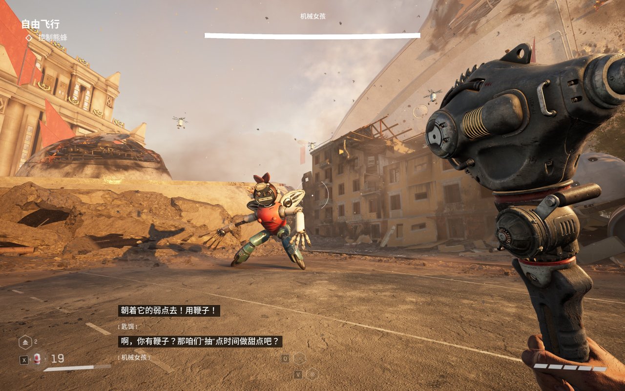 这个BOSS的攻击欲望极强,并且攻击速度极快,但是还在她出场时周围会有出现一圈的蜜蜂机器人,我们用这个DLC中的新技能抓钩进行躲避。
