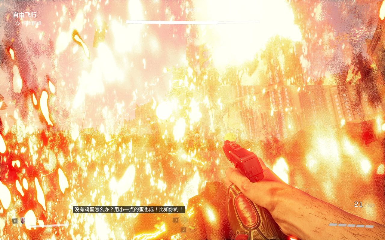 之后BOSS就会进入第二个攻击阶段,跳到高处制造火球向我们袭来,以及天上会掉落车辆来砸我们,这个注意走位正常躲避就好了,每次火球攻击完她的胸口的能源装置都会露出,这个时候我们抓紧机会输出就好了。