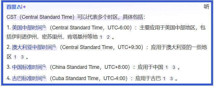 但问题是CST这个代号表示的时区实际上不止北京时间一种——