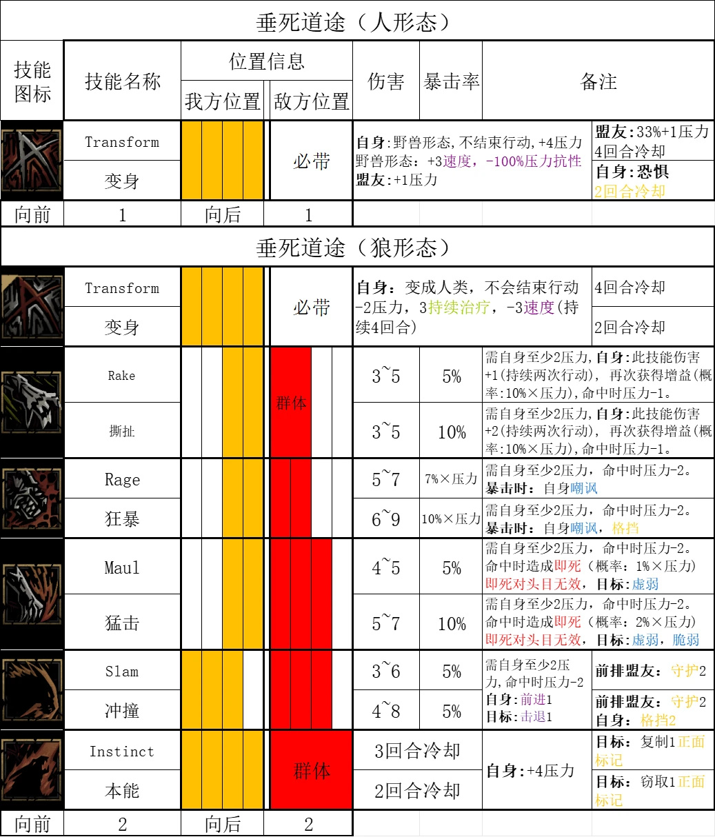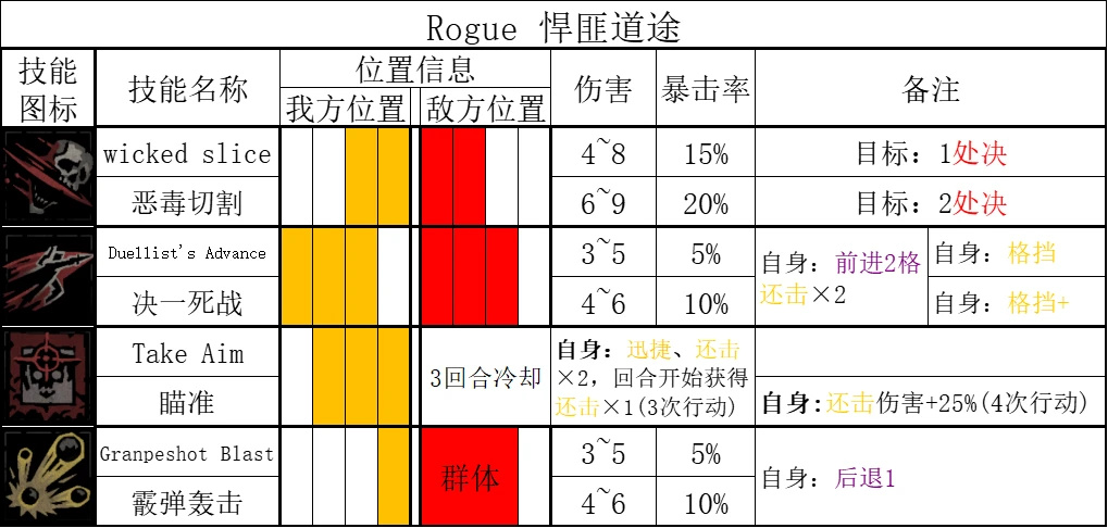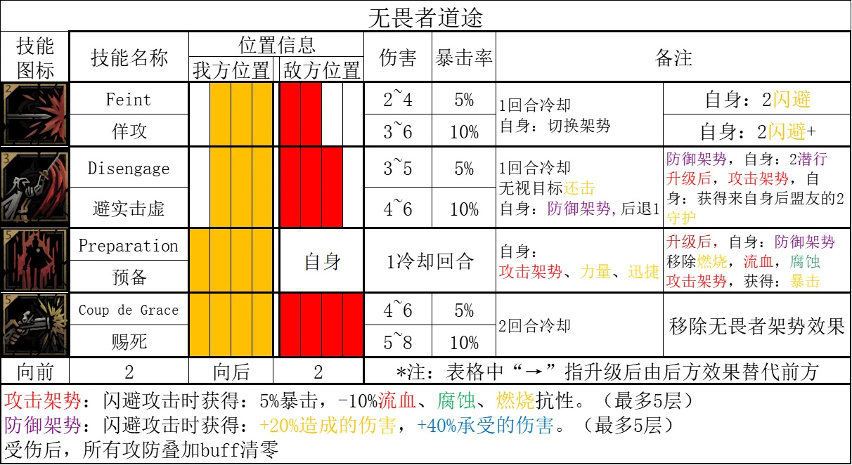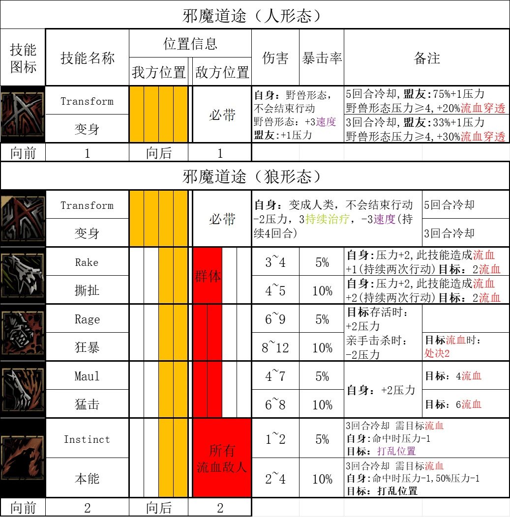 新查看技能表的請注意,本表格第一個表格爲漫遊者英雄的全部技能,後續介紹的道途技能,僅包含道途改變的技能與其特殊能力,未改變的技能,則與漫遊者道途是相同的。