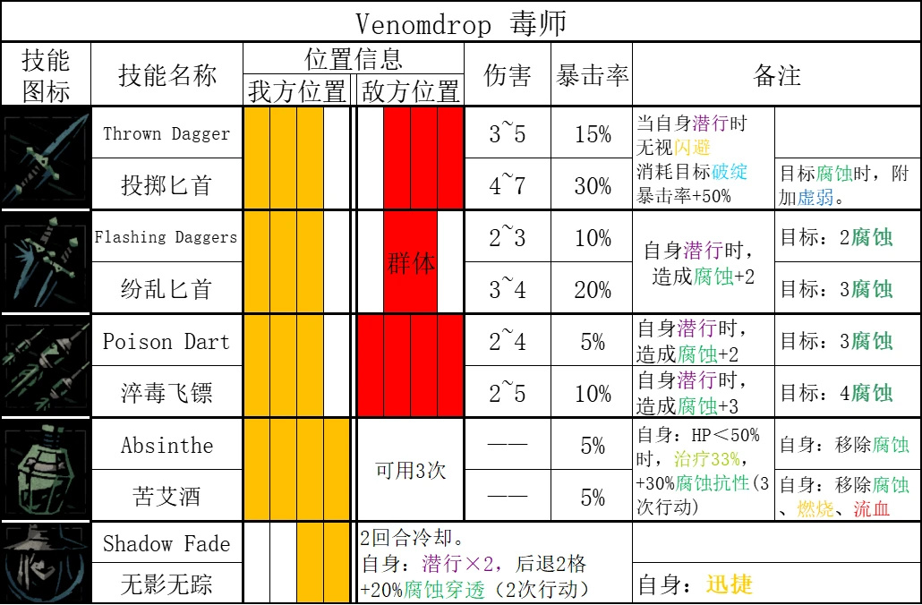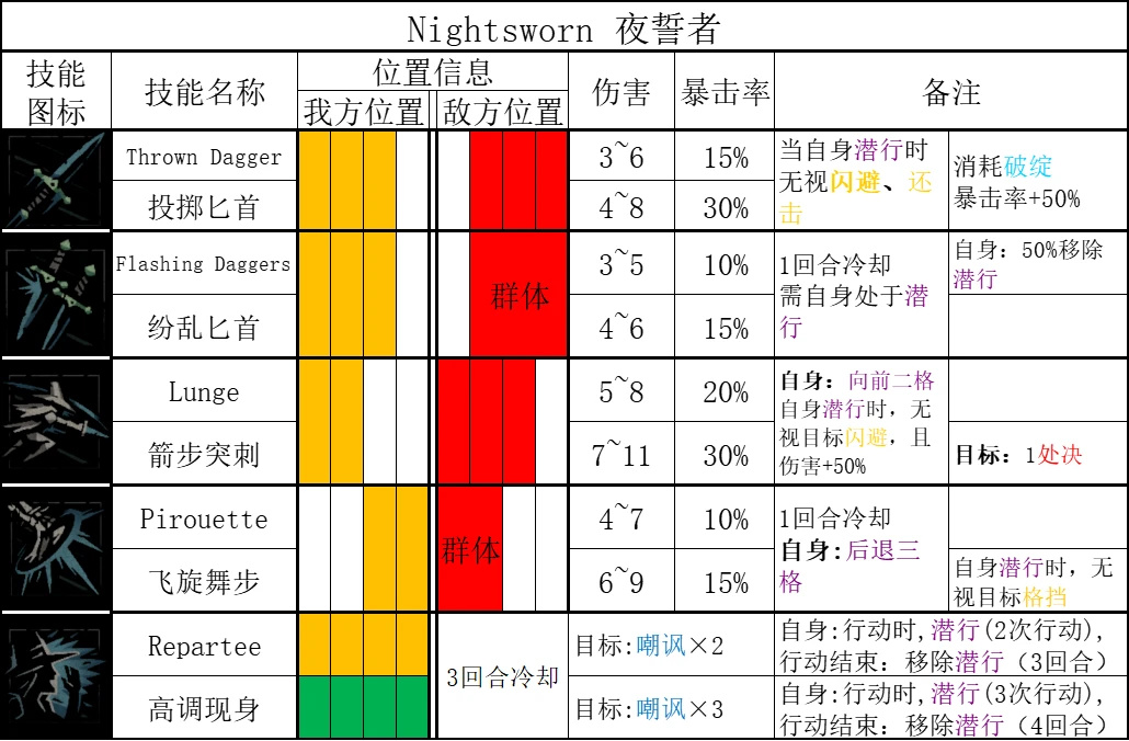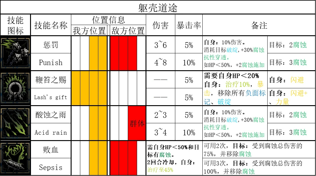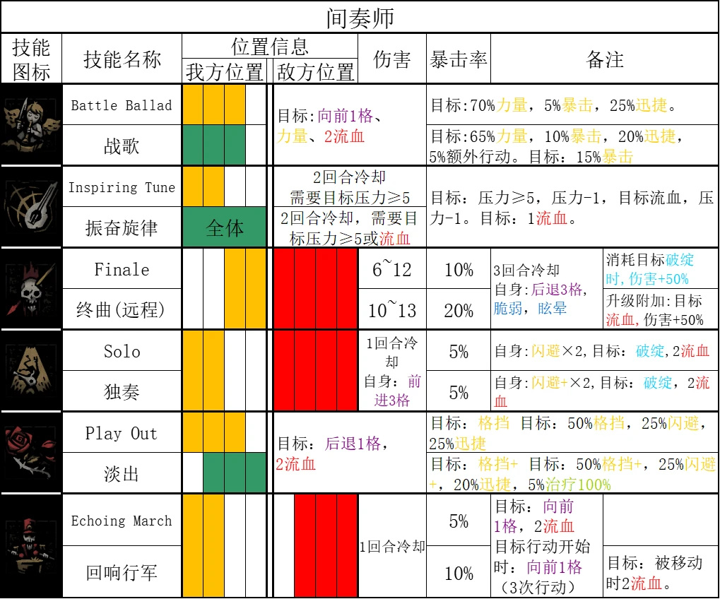 新查看技能表的請注意,本表格第一個表格爲漫遊者英雄的全部技能,後續介紹的道途技能,僅包含道途改變的技能與其特殊能力,未改變的技能,則與漫遊者道途是相同的。
