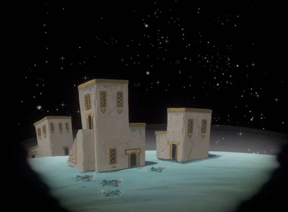 數萬年後的我們在探尋挪麥人的遺蹟時,還隱約可以看到他們生活時的情景,玩捉迷藏遊戲的孩童們,定居點內正躺在牀上休息的居民,實驗室中工作的研究人員……他們的生命,似乎都定格在了同一個瞬間。