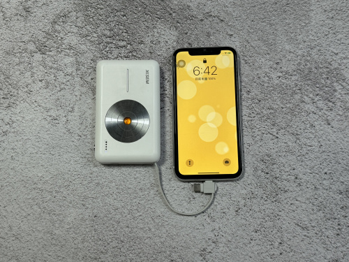 这款充电宝在设计上与其他款的不同之处是自带了一个AC插头,只要遇到了插头充电宝没电了就能够及时的续上,同时也自带了双口数据线的,接口分别是type-C、Ligntning快充线的,平时出门的时候只要是拿起来久可以开始充电,充电速度也比较的快速,27W的飚速快充,续航方面是有10000mAh的,日常基本是够使用的,不过自带插头的话在重量上也是会随之增加的,不在乎充电宝的重量就没事。